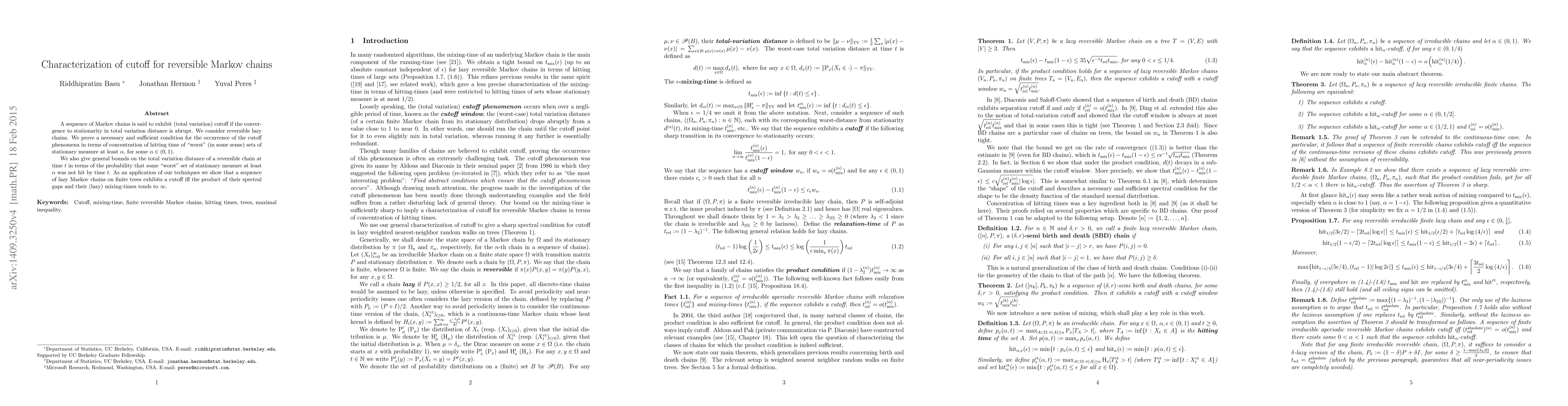 This paper characterizes cutoff phenomena in reversible lazy Markov chains, proving a necessary and sufficient condition based on the concentration of hitting times for "worst" sets of stationary measure. It also provides bounds on total variation distance and applies the techniques to show cutoff in lazy Markov chains on finite trees.