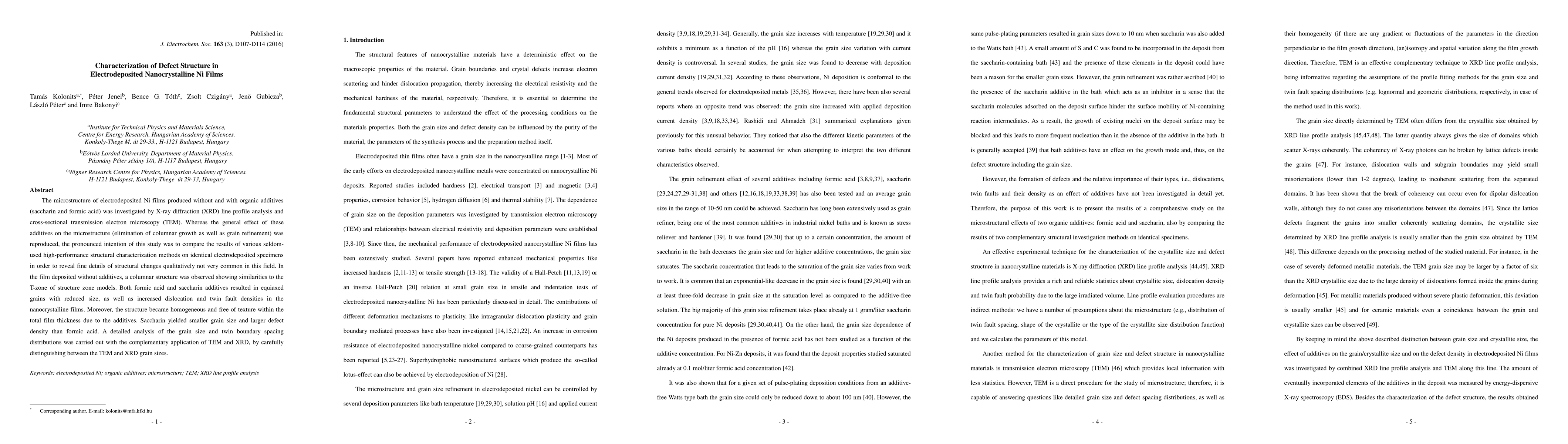 The study investigates electrodeposited Ni films with additives, revealing equiaxed grains with reduced size and increased dislocation and twin fault densities, with saccharin yielding smaller grain sizes than formic acid.