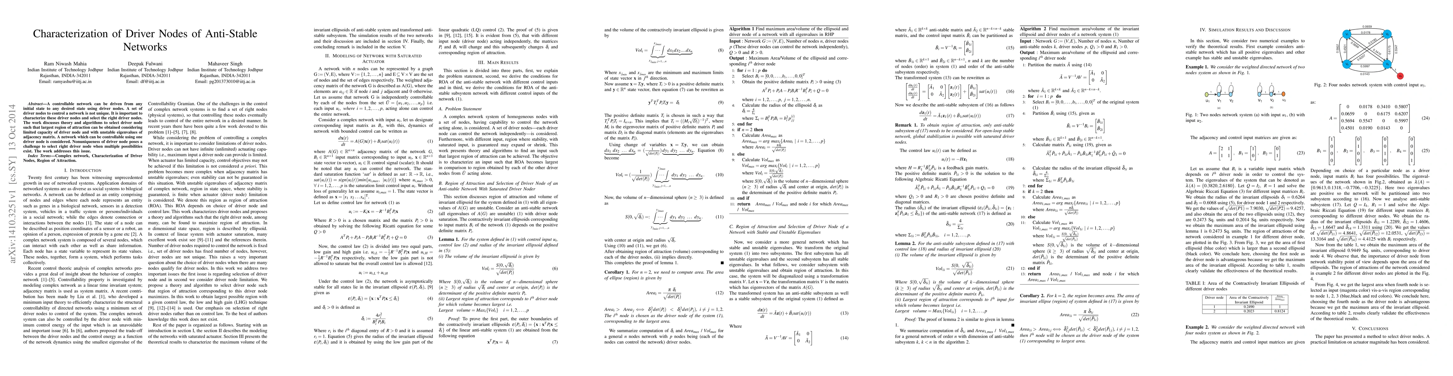 A controllable network can be driven from any initial state to any desired state using driver nodes. A set of driver nodes to control a network is not unique. It is important to characterize these driver nodes and select the right driver nodes. The work discusses theory and algorithms to select driver node such that largest region of attraction can be obtained considering limited capacity of driver node and with unstable eigenvalues of adjacency matrix. A network which can be controllable using one driver node is considered. Nonuniqueness of driver node poses a challenge to select right driver node when multiple possibilities exist. The work addresses this issue.