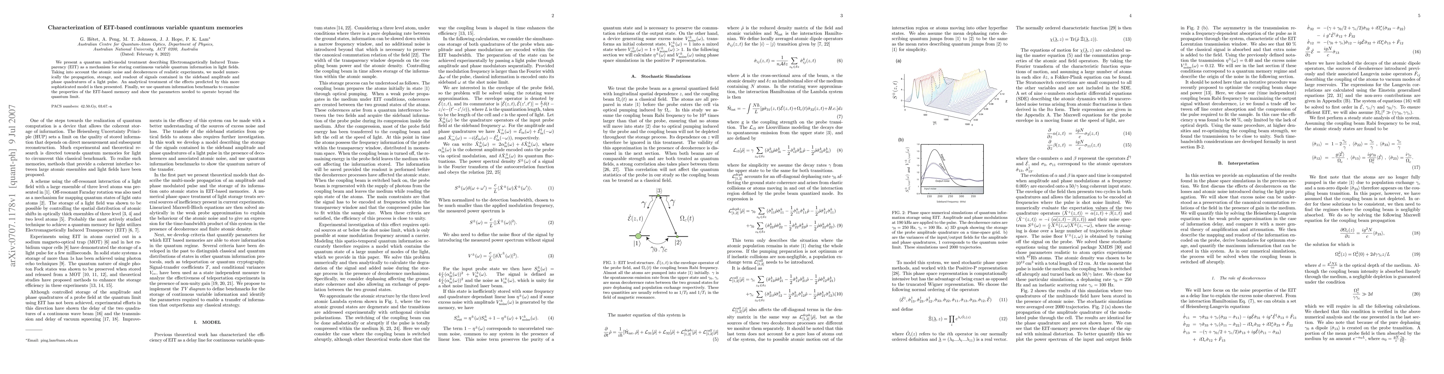 We present a quantum multi-modal treatment describing Electromagnetically Induced Transparency (EIT) as a mechanism for storing continuous variable quantum information in light fields. Taking into account the atomic noise and decoherences of realistic experiments, we model numerically the propagation, storage, and readout of signals contained in the sideband amplitude and phase quadratures of a light pulse. An analytical treatment of the effects predicted by this more sophisticated model is then presented. Finally, we use quantum information benchmarks to examine the properties of the EIT-based memory and show the parameters needed to operate beyond the quantum limit.