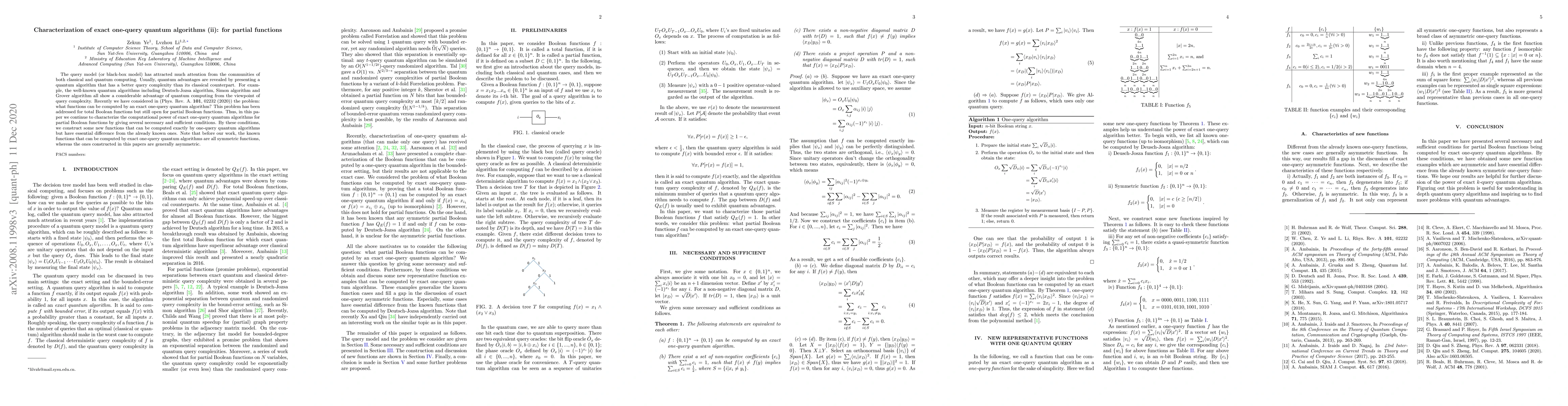 This paper extends the study of exact one-query quantum algorithms to partial Boolean functions, providing necessary and sufficient conditions for their computational power. Unlike previously known symmetric functions, the new functions identified here are generally asymmetric.