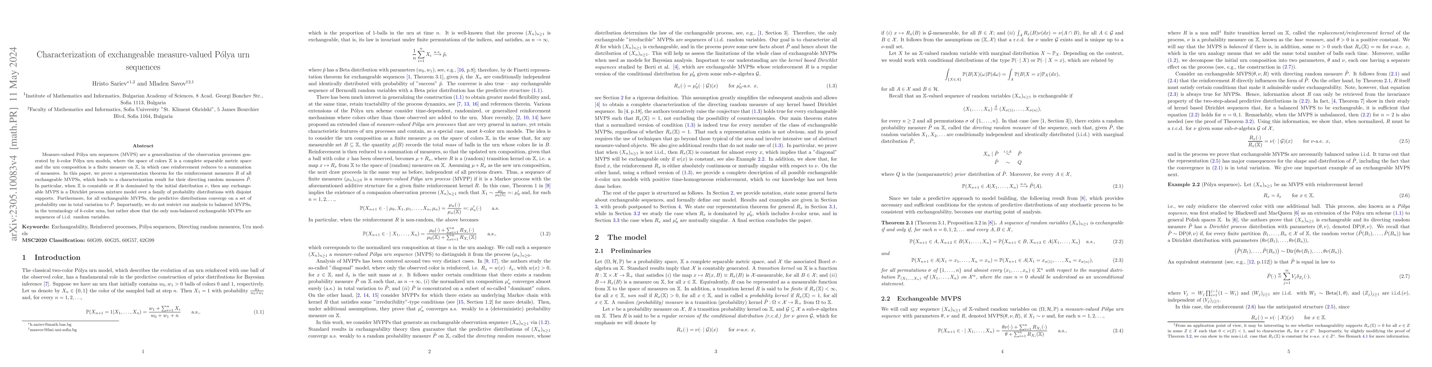 Measure-valued P\'olya urn sequences (MVPS) are a generalization of the observation processes generated by $k$-color P\'olya urn models, where the space of colors $\mathbb{X}$ is a complete separable metric space and the urn composition is a finite measure on $\mathbb{X}$, in which case reinforcement reduces to a summation of measures. In this paper, we prove a representation theorem for the reinforcement measures $R$ of all exchangeable MVPSs, which leads to a characterization result for their directing random measures $\tilde{P}$. In particular, when $\mathbb{X}$ is countable or $R$ is dominated by the initial distribution $\nu$, then any exchangeable MVPS is a Dirichlet process mixture model over a family of probability distributions with disjoint supports. Furthermore, for all exchangeable MVPSs, the predictive distributions converge on a set of probability one in total variation to $\tilde{P}$. Importantly, we do not restrict our analysis to balanced MVPSs, in the terminology of $k$-color urns, but rather show that the only non-balanced exchangeable MVPSs are sequences of i.i.d. random variables.