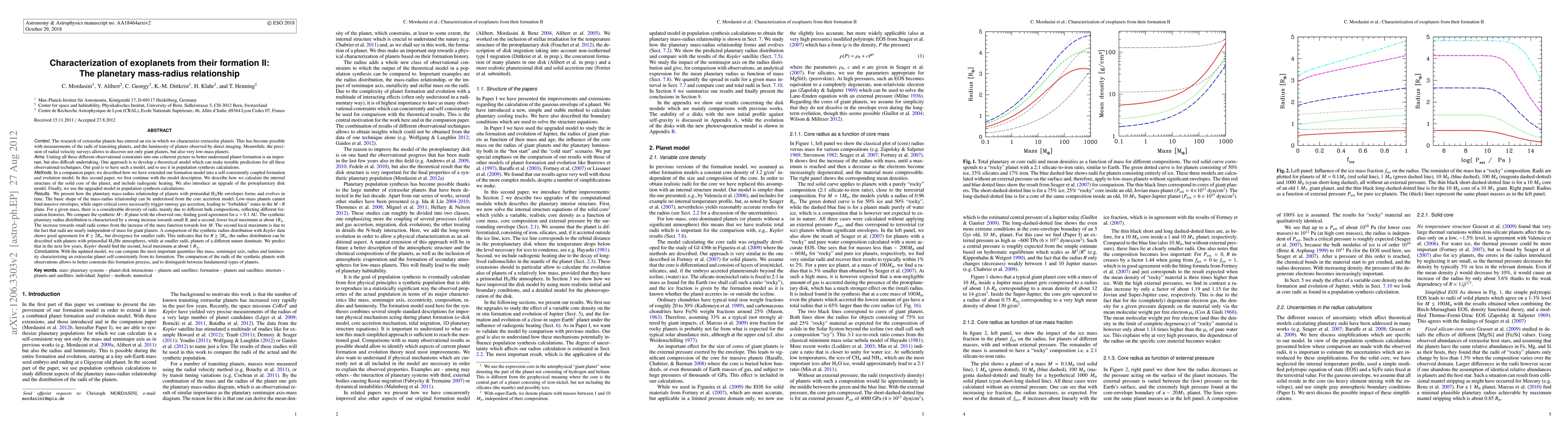 This paper develops a self-consistent model for exoplanet formation and evolution, focusing on the mass-radius relationship. It shows good agreement between the synthetic mass-radius relation and observed data for larger planets, predicting that Kepler will soon confirm a local maximum at ~1 Jovian radius for smaller planets.