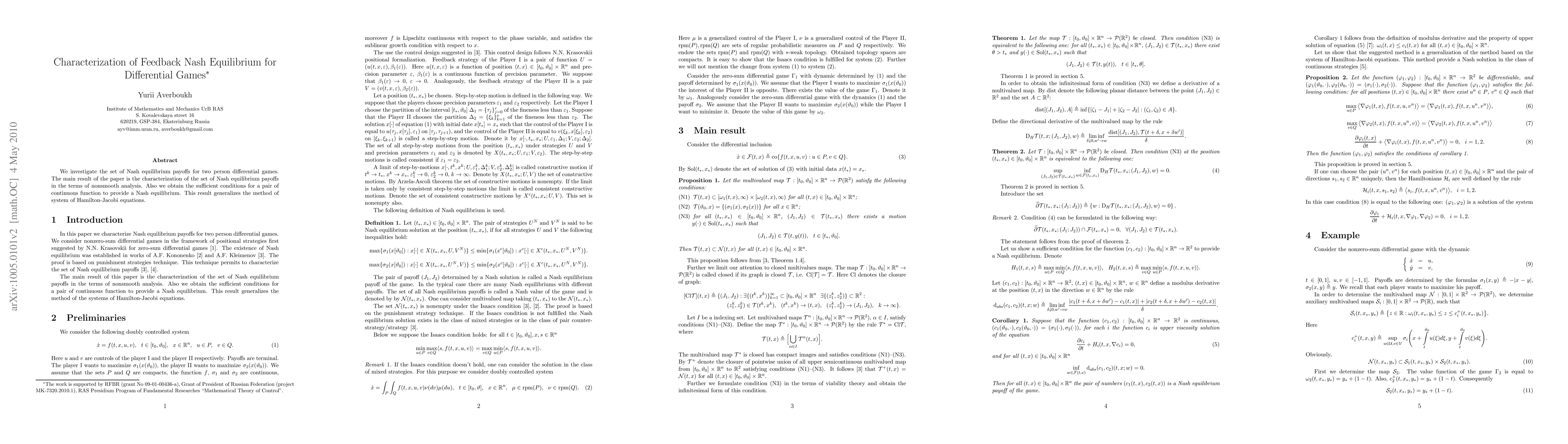 This paper characterizes the set of Nash equilibrium payoffs for two-player differential games using nonsmooth analysis, and provides sufficient conditions for continuous functions to constitute a Nash equilibrium, extending the Hamilton-Jacobi equations method.