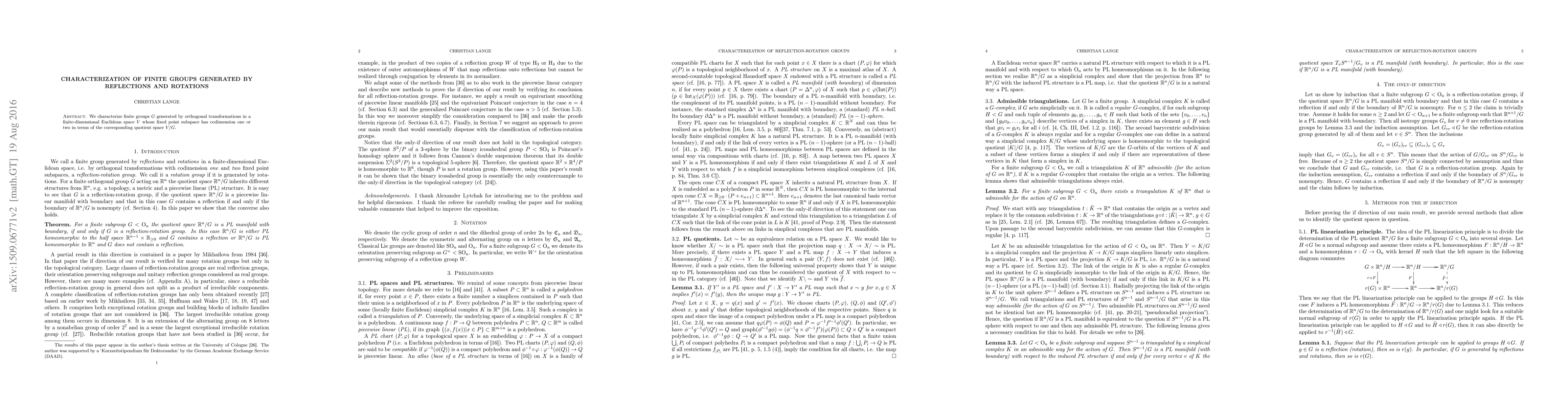 We characterize finite groups G generated by orthogonal transformations in a finite-dimensional Euclidean space V whose fixed point subspace has codimension one or two in terms of the corresponding quotient space V/G with its quotient piecewise linear structure.