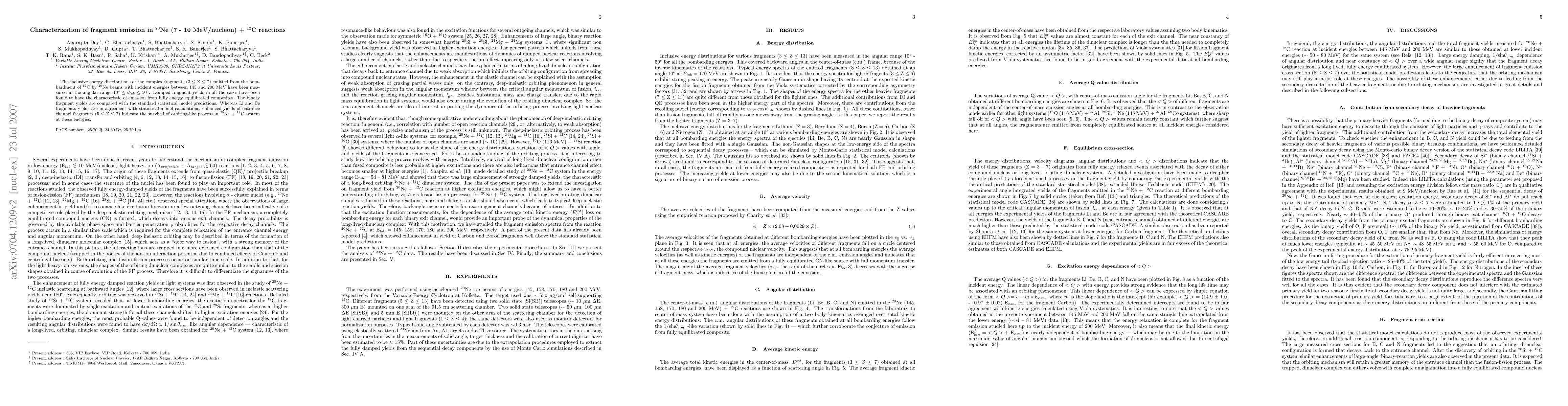 Researchers measured fragment emissions from ^{20}Ne + ^{12}C reactions, finding enhanced yields of lighter fragments at intermediate energies, suggesting the survival of orbiting-like processes.