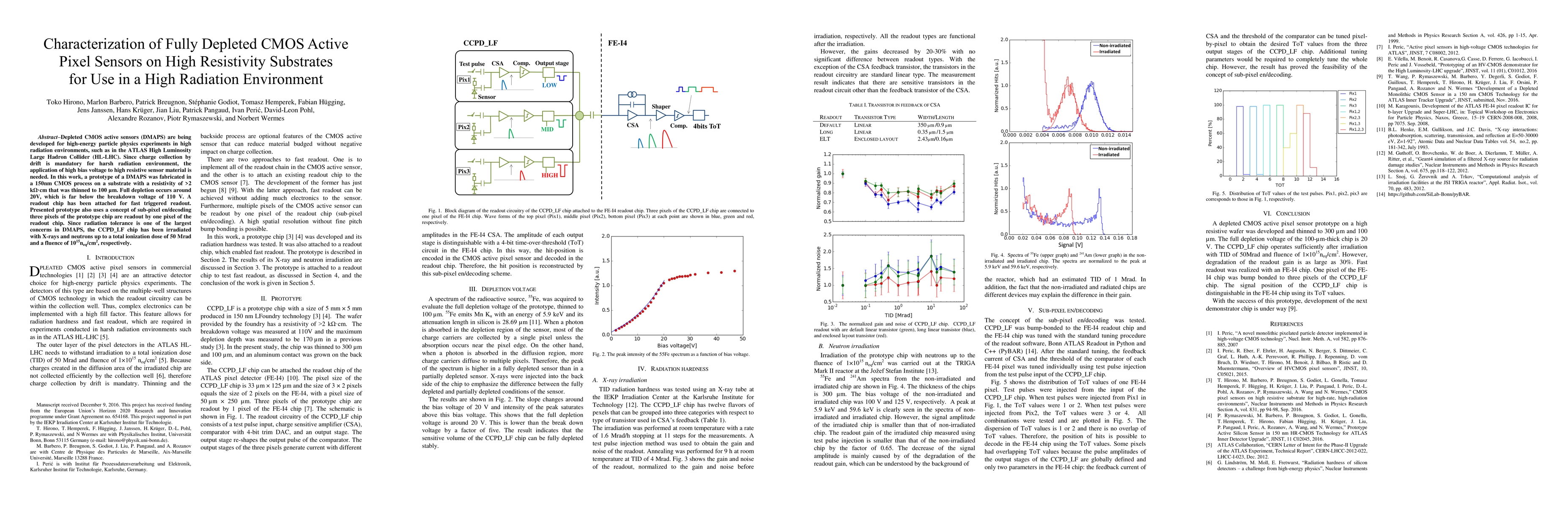 Researchers developed a prototype of depleted CMOS active pixel sensors on high resistivity substrates for use in high radiation environments. The sensor design successfully achieved full depletion at 20V, showing promise for applications in high-energy particle physics experiments.