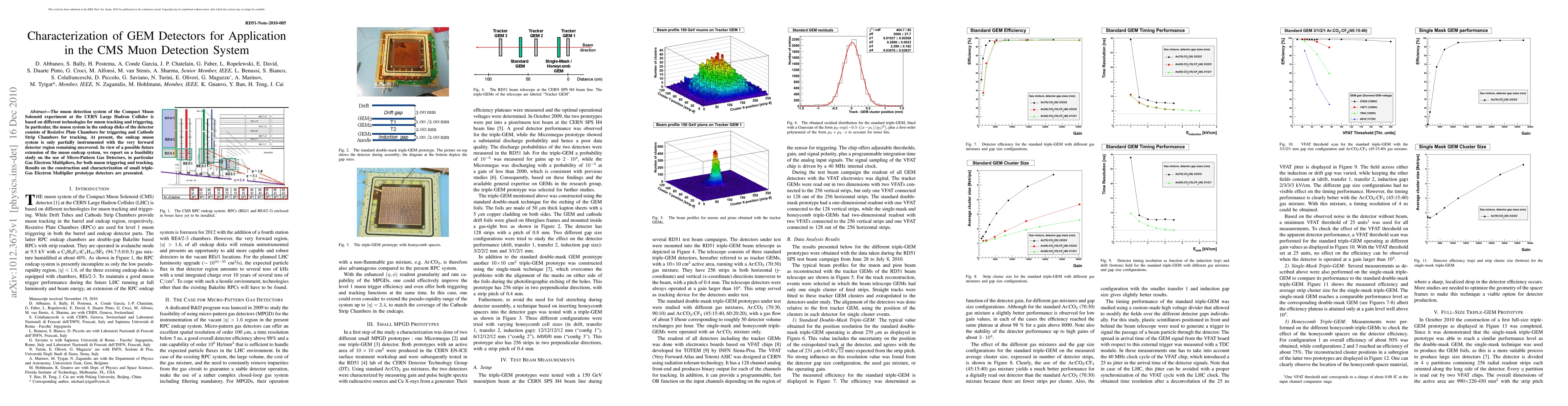 The research involved the characterization and testing of small triple GEM prototype detectors for potential use in the CMS muon detection system, utilizing a 150 GeV muon/pion beam at the CERN SPSH4 beamline and the RD51 triple-GEM beam telescope.