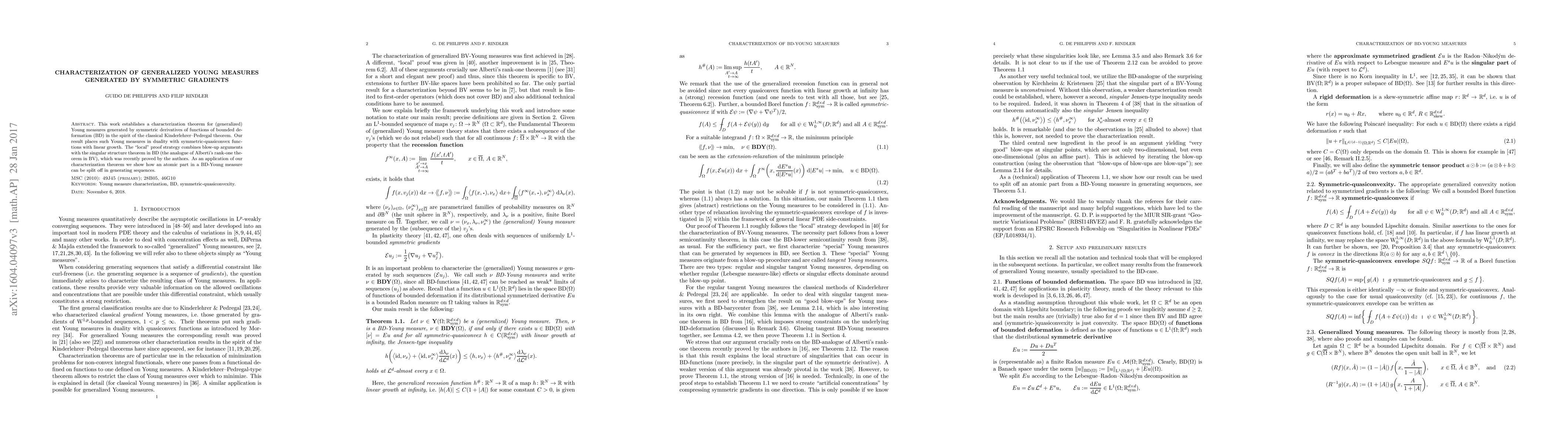 This paper characterizes generalized Young measures from symmetric derivatives of BD functions via duality with symmetric-quasiconvex functions. The proof leverages blow-up arguments and the singular structure theorem in BD, demonstrating how atomic parts in BD-Young measures can be isolated.