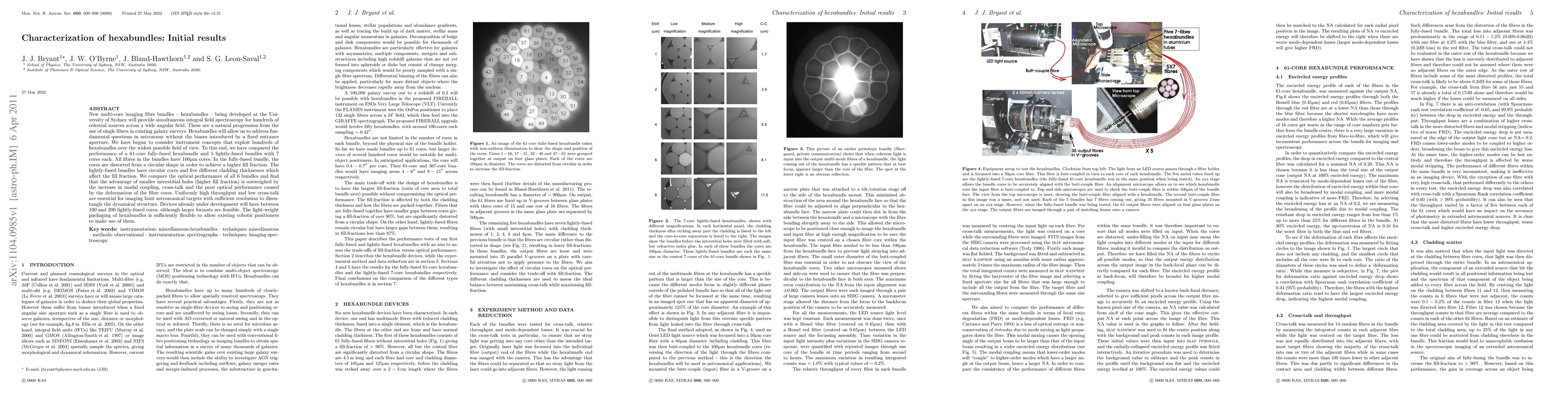 New multi-core imaging fibre bundles -- hexabundles -- being developed at the University of Sydney will provide simultaneous integral field spectroscopy for hundreds of celestial sources across a wide angular field. These are a natural progression from the use of single fibres in existing galaxy surveys. Hexabundles will allow us to address fundamental questions in astronomy without the biases introduced by a fixed entrance aperture. We have begun to consider instrument concepts that exploit hundreds of hexabundles over the widest possible field of view. To this end, we have compared the performance of a 61-core fully-fused hexabundle and 5 lightly-fused bundles with 7 cores each. All fibres in the bundles have 100 micron cores. In the fully-fused bundle, the cores are distorted from a circular shape in order to achieve a higher fill fraction. The lightly-fused bundles have circular cores and five different cladding thicknesses which affect the fill fraction. We compare the optical performance of all 6 bundles and find that the advantage of smaller interstitial holes (higher fill fraction) is outweighed by the increase in modal coupling, cross-talk and the poor optical performance caused by the deformation of the fibre cores. Uniformly high throughput and low cross-talk are essential for imaging faint astronomical targets with sufficient resolution to disentangle the dynamical structure. Devices already under development will have between 100 and 200 lightly-fused cores, although larger formats are feasible. The light-weight packaging of hexabundles is sufficiently flexible to allow existing robotic positioners to make use of them.