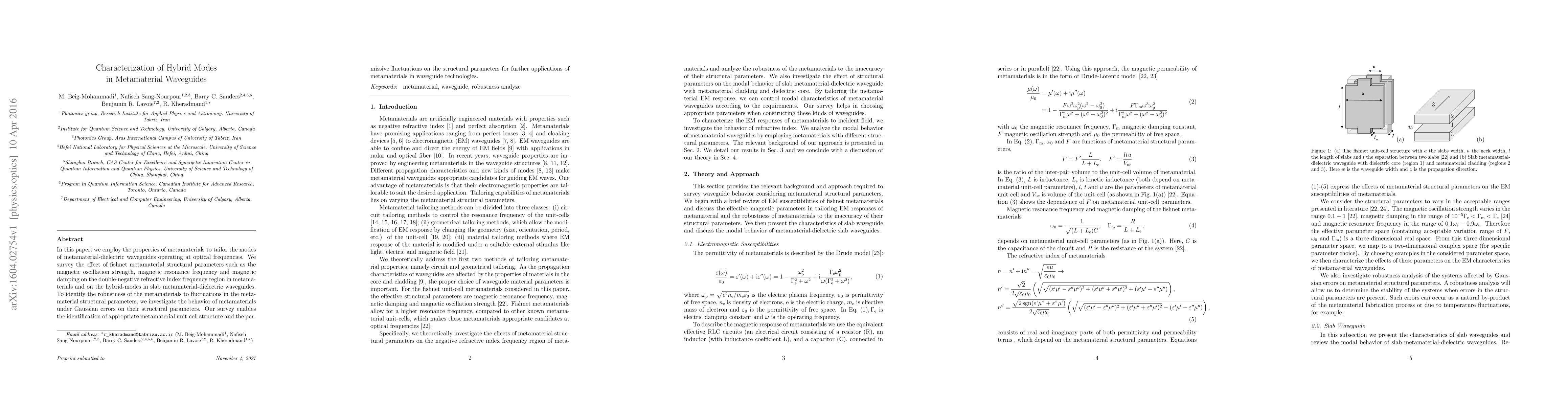 This research characterizes hybrid modes in metamaterial waveguides by tailoring their modes using metamaterial properties, focusing on fishnet structures. It examines the influence of structural parameters like magnetic oscillation strength on hybrid-modes, assessing the robustness of these metamaterials under Gaussian errors to inform future waveguide applications.