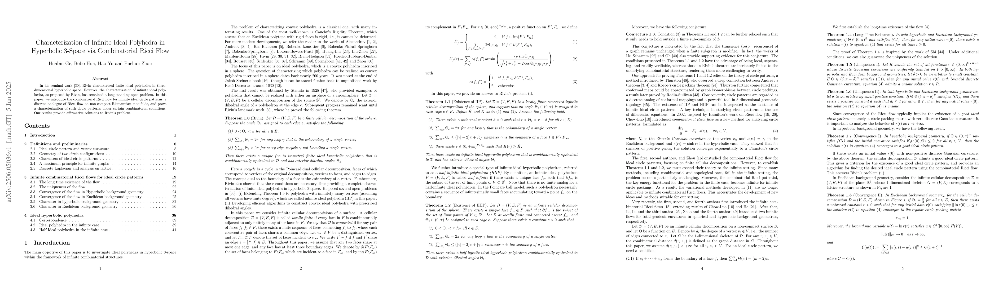 Development and application of combinatorial Ricci flow for characterizing infinite ideal circle patterns in hyperbolic 3-space.
