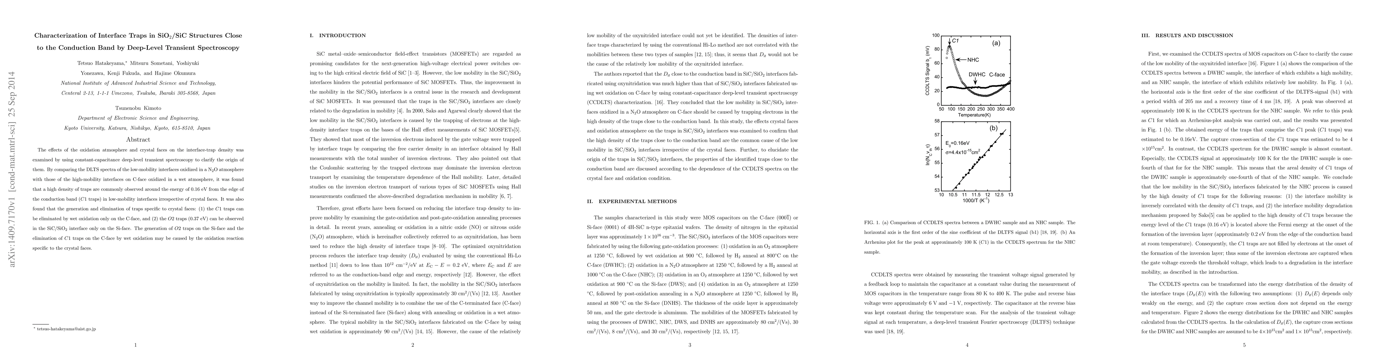 The effects of the oxidation atmosphere and crystal faces on the interface-trap density was examined by using constant-capacitance deep-level transient spectroscopy to clarify the origin of them. By comparing the DLTS spectra of the low-mobility interfaces oxidized in a N$_2$O atmosphere with those of the high-mobility interfaces on C-face oxidized in a wet atmosphere, it was found that a high density of traps are commonly observed around the energy of 0.16 eV from the edge of the conduction band ($C1$ traps) in low-mobility interfaces irrespective of crystal faces. It was also found that the generation and elimination of traps specific to crystal faces: (1) the $C1$ traps can be eliminated by wet oxidation only on the C-face, and (2) the $O2$ traps (0.37 eV) can be observed in the SiC/SiO$_2$ interface only on the Si-face. The generation of $O2$ traps on the Si-face and the elimination of $C1$ traps on the C-face by wet oxidation may be caused by the oxidation reaction specific to the crystal faces.