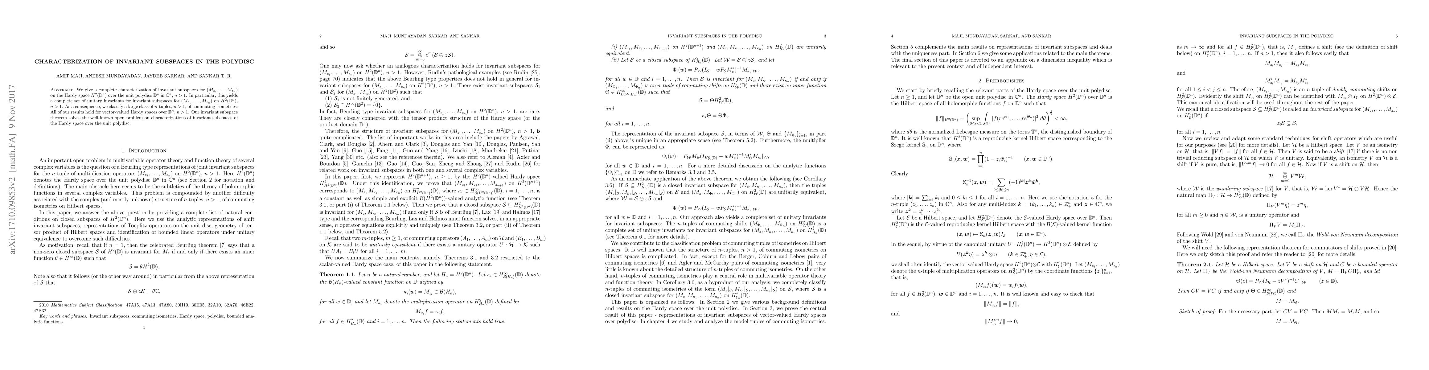 We give a complete characterization of invariant subspaces for $(M_{z_1}, \ldots, M_{z_n})$ on the Hardy space $H^2(\mathbb{D}^n)$ over the unit polydisc $\mathbb{D}^n$ in $\mathbb{C}^n$, $n >1$. In particular, this yields a complete set of unitary invariants for invariant subspaces for $(M_{z_1}, \ldots, M_{z_n})$ on $H^2(\mathbb{D}^n)$, $n > 1$. As a consequence, we classify a large class of $n$-tuples, $n > 1$, of commuting isometries. All of our results hold for vector-valued Hardy spaces over $\mathbb{D}^n$, $n > 1$. Our invariant subspace theorem solves the well-known open problem on characterizations of invariant subspaces of the Hardy space over the unit polydisc.