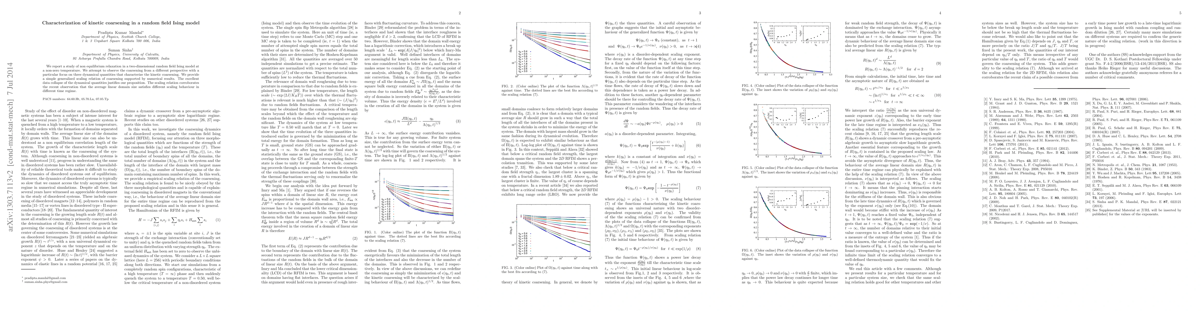 This paper investigates nonequilibrium relaxation in a two-dimensional random-field Ising model, focusing on kinetic coarsening through three dynamical quantities. The study proposes a generalized scaling relation supported by numerical results, demonstrating different scaling behaviors for average linear domain size in different time regimes.