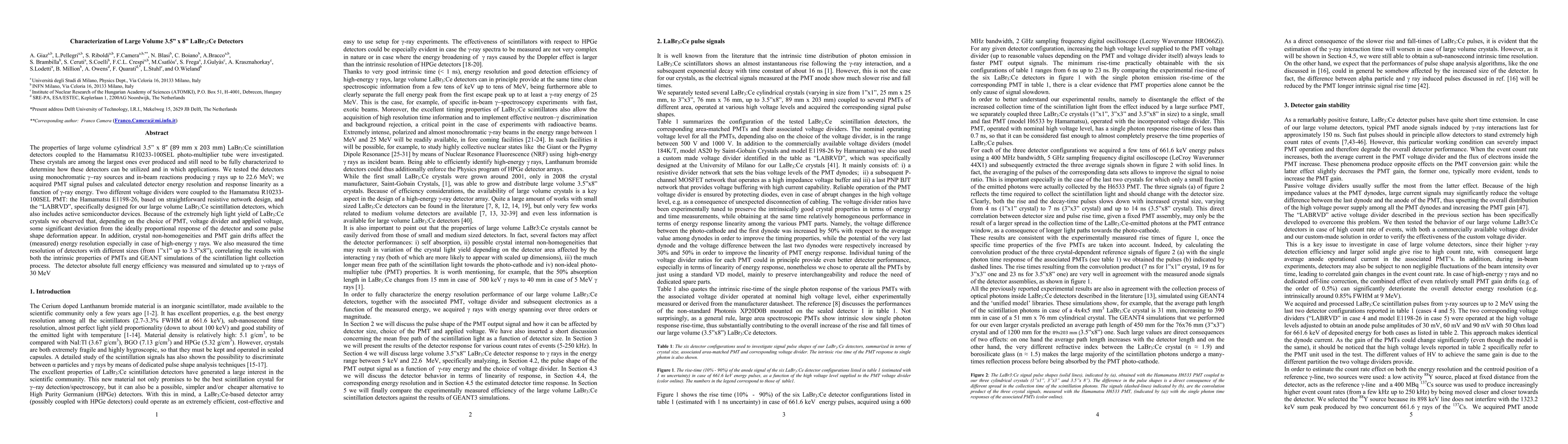 The properties of large volume cylindrical 3.5 x 8 inches (89 mm x 203 mm) LaBr3:Ce scintillation detectors coupled to the Hamamatsu R10233-100SEL photo-multiplier tube were investigated. These crystals are among the largest ones ever produced and still need to be fully characterized to determine how these detectors can be utilized and in which applications. We tested the detectors using monochromatic gamma-ray sources and in-beam reactions producing gamma rays up to 22.6 MeV; we acquired PMT signal pulses and calculated detector energy resolution and response linearity as a function of gamma-ray energy. Two different voltage dividers were coupled to the Hamamatsu R10233-100SEL PMT: the Hamamatsu E1198-26, based on straightforward resistive network design, and the LABRVD, specifically designed for our large volume LaBr3:Ce scintillation detectors, which also includes active semiconductor devices. Because of the extremely high light yield of LaBr3:Ce crystals we observed that, depending on the choice of PMT, voltage divider and applied voltage, some significant deviation from the ideally proportional response of the detector and some pulse shape deformation appear. In addition, crystal non-homogeneities and PMT gain drifts affect the (measured) energy resolution especially in case of high-energy gamma rays. We also measured the time resolution of detectors with different sizes (from 1x1 inches up to 3.5x8 inches), correlating the results with both the intrinsic properties of PMTs and GEANT simulations of the scintillation light collection process. The detector absolute full energy efficiency was measured and simulated up to gamma-rays of 30 MeV