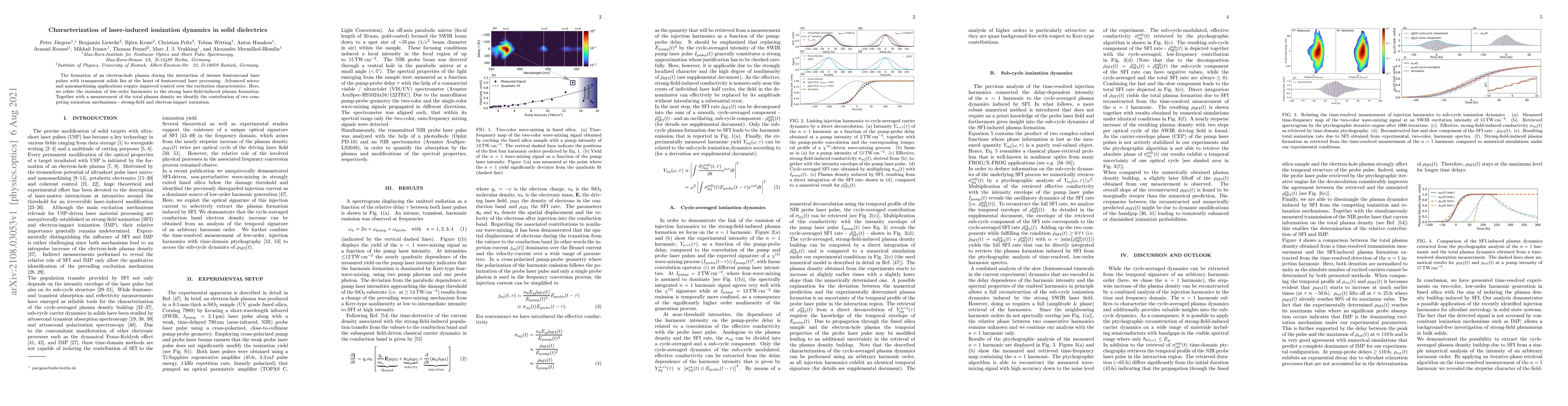 This paper investigates the dynamics of laser-induced ionization in solid dielectrics, focusing on the formation of electron-hole plasmas during intense femtosecond laser interactions. It correlates the emission of low-order harmonics to plasma formation and identifies two main ionization mechanisms: strong-field and electron-impact ionization.