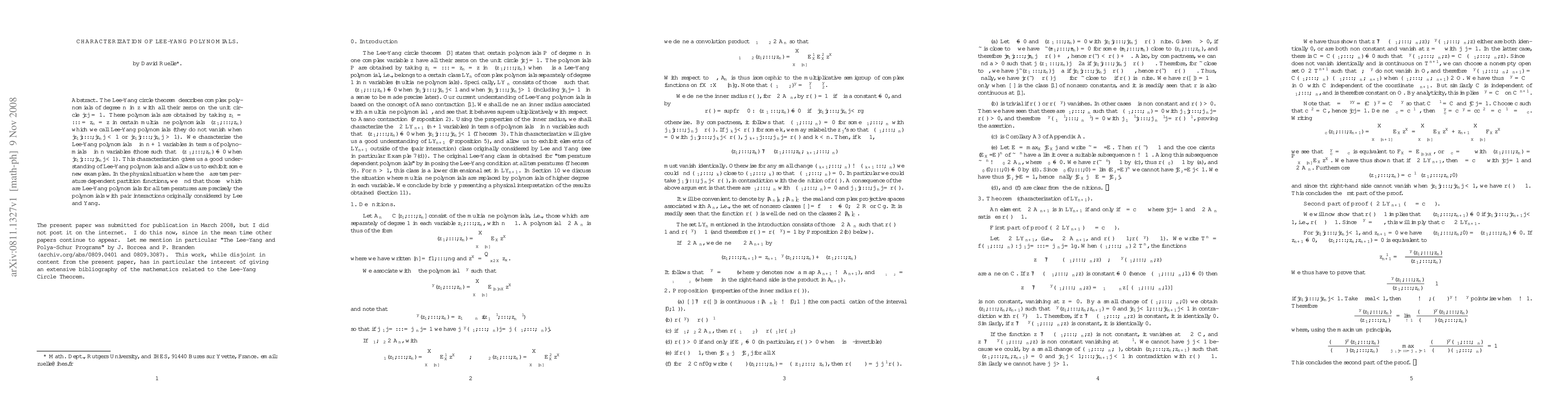 This paper characterizes Lee-Yang polynomials, which yield complex polynomials with all zeros on the unit circle, through a relationship with simpler polynomials that do not vanish within the unit disk. This characterization reveals new examples and links these polynomials to pair interactions in physical systems.
