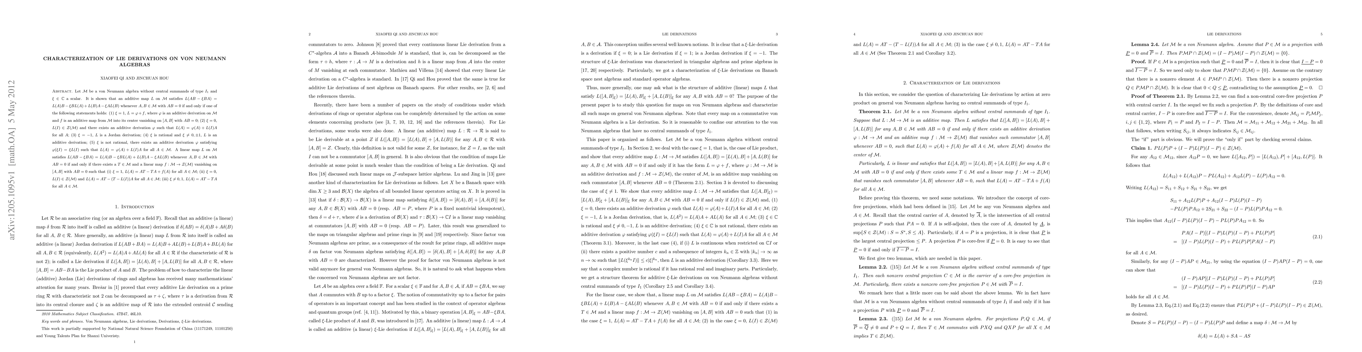 Let ${\mathcal M}$ be a von Neumann algebra without central summands of type $I_1$ and $\xi\in{\mathbb C}$ a scalar. It is shown that an additive map $L$ on $\mathcal M$ satisfies $L(AB-\xi BA)=L(A)B-\xi BL(A)+L(B)A-\xi AL(B)$ whenever $A,B\in{\mathcal M}$ with $AB=0$ if and only if one of the following statements holds: (1) $\xi=1$, $L=\varphi+f$, where $\varphi$ is an additive derivation on $\mathcal M$ and $f$ is an additive map from $\mathcal M$ into its center vanishing on $[A,B]$ with $AB=0$; (2) $\xi=0$, $L(I)\in{\mathcal Z}({\mathcal M})$ and there exists an additive derivation $\varphi$ such that $L(A)=\varphi(A)+L(I)A$ for all $A$; (3) $\xi=-1$, $L$ is a Jordan derivation; (4) $\xi$ is rational and $\xi\not=0, \pm1$, $L$ is an additive derivation; (5) $\xi$ is not rational, there exists an additive derivation $\varphi$ satisfying $\varphi(\xi I)=\xi L(I)$ such that $L(A)=\varphi(A) + L(I)A$ for all $A \in{\mathcal M}$. A linear map $L$ on $\mathcal M$ satisfies $L(AB-\xi BA)=L(A)B-\xi BL(A)+L(B)A-\xi AL(B)$ whenever $A,B\in{\mathcal M}$ with $AB=0$ if and only if there exists a $T\in\mathcal M$ and a linear map $f:{\mathcal M}\rightarrow{\mathcal Z}({\mathcal M})$ vanishing on $[A,B]$ with $AB=0$ such that (i) $\xi=1$, $L(A)=AT-TA+f(A)$ for all $A\in\mathcal M$; (ii) $\xi=0$, $L(I)\in{\mathcal Z}({\mathcal M})$ and $L(A)=AT-(T-L(I))A$ for all $A\in{\mathcal M}$; (iii) $\xi\not=0,1$, $L(A)=AT-TA$ for all $A \in{\mathcal M}$.