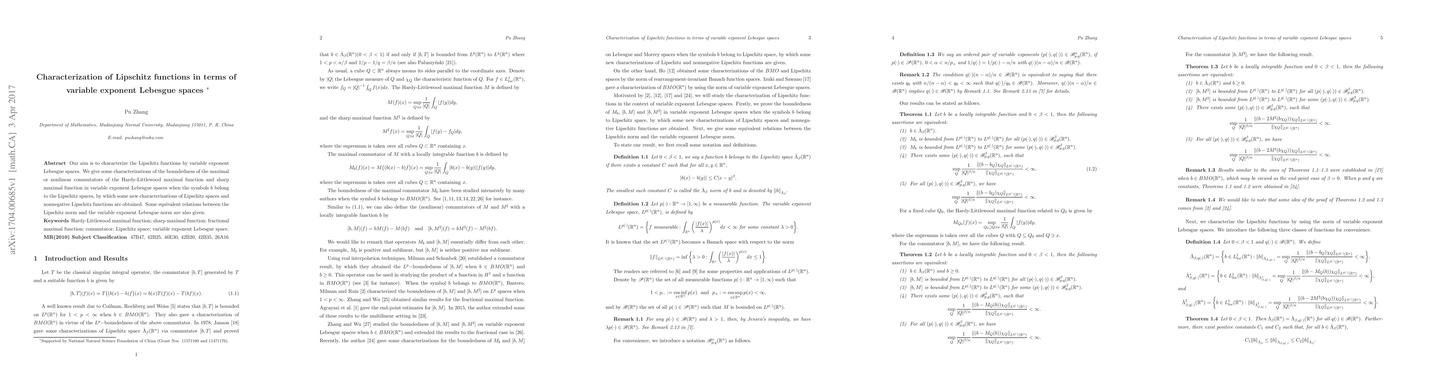 This paper characterizes Lipschitz functions using variable exponent Lebesgue spaces, establishing new bounds for maximal and nonlinear commutators, and deriving equivalent relations between the Lipschitz norm and variable exponent Lebesgue norm.