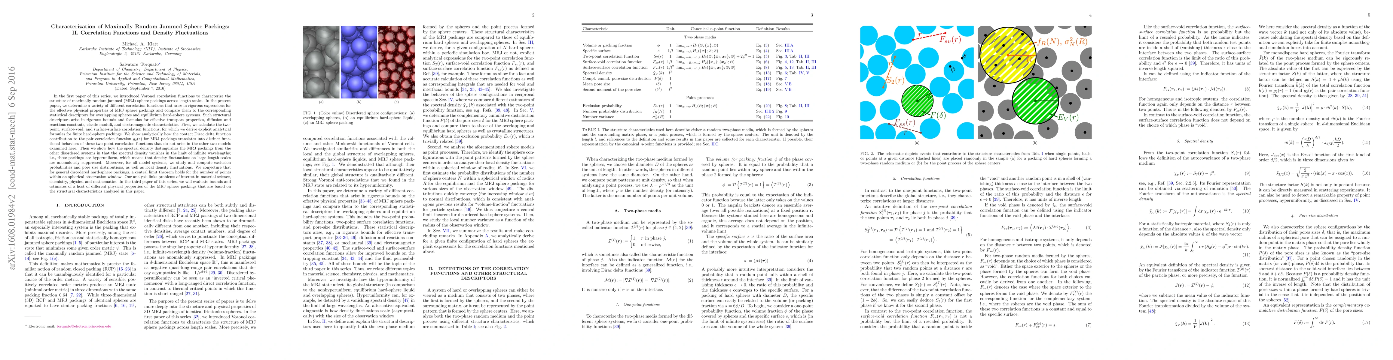 This paper characterizes the structural properties of maximally random jammed (MRJ) sphere packings using correlation functions and density fluctuations. It derives analytical formulas for two-point, surface-void, and surface-surface correlation functions, revealing distinct behaviors in MRJ packings compared to overlapping spheres and equilibrium hard-sphere systems. The study also highlights the hyperuniformity of MRJ packings and their anomalous suppression of density fluctuations on large scales.
