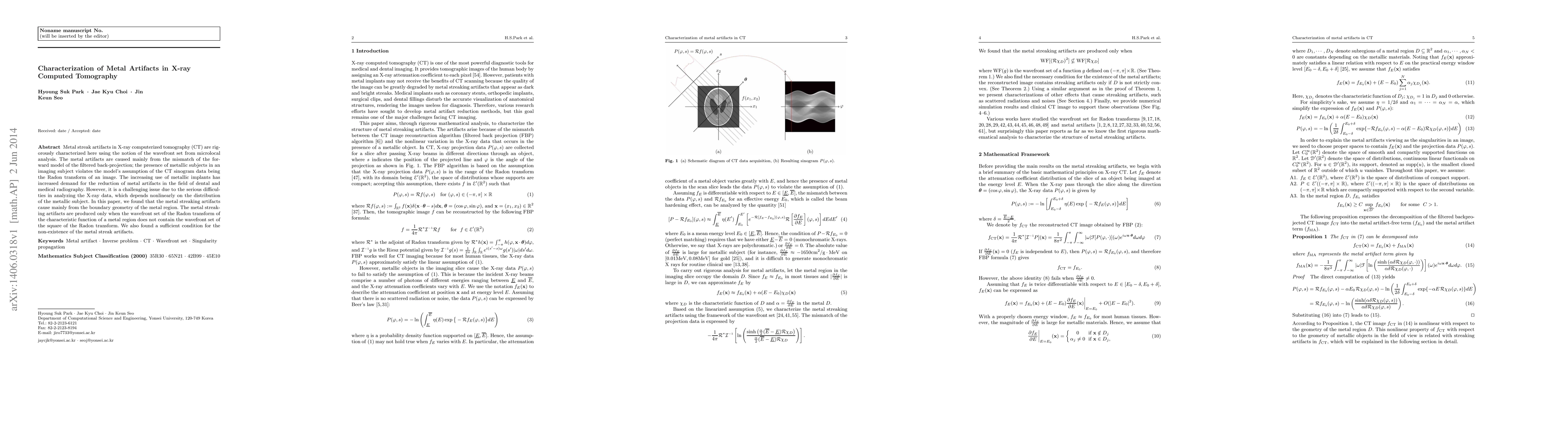 Metal streak artifacts in X-ray computerized tomography (CT) are rigorously characterized here using the notion of the wavefront set from microlocal analysis. The metal artifacts are caused mainly from the mismatch of the forward model of the filtered back-projection; the presence of metallic subjects in an imaging subject violates the model's assumption of the CT sinogram data being the Radon transform of an image. The increasing use of metallic implants has increased demand for the reduction of metal artifacts in the field of dental and medical radiography. However, it is a challenging issue due to the serious difficulties in analyzing the X-ray data, which depends nonlinearly on the distribution of the metallic subject. In this paper, we found that the metal streaking artifacts cause mainly from the boundary geometry of the metal region. The metal streaking artifacts are produced only when the wavefront set of the Radon transform of the characteristic function of a metal region does not contain the wavefront set of the square of the Radon transform. We also found a sufficient condition for the non-existence of the metal streak artifacts.