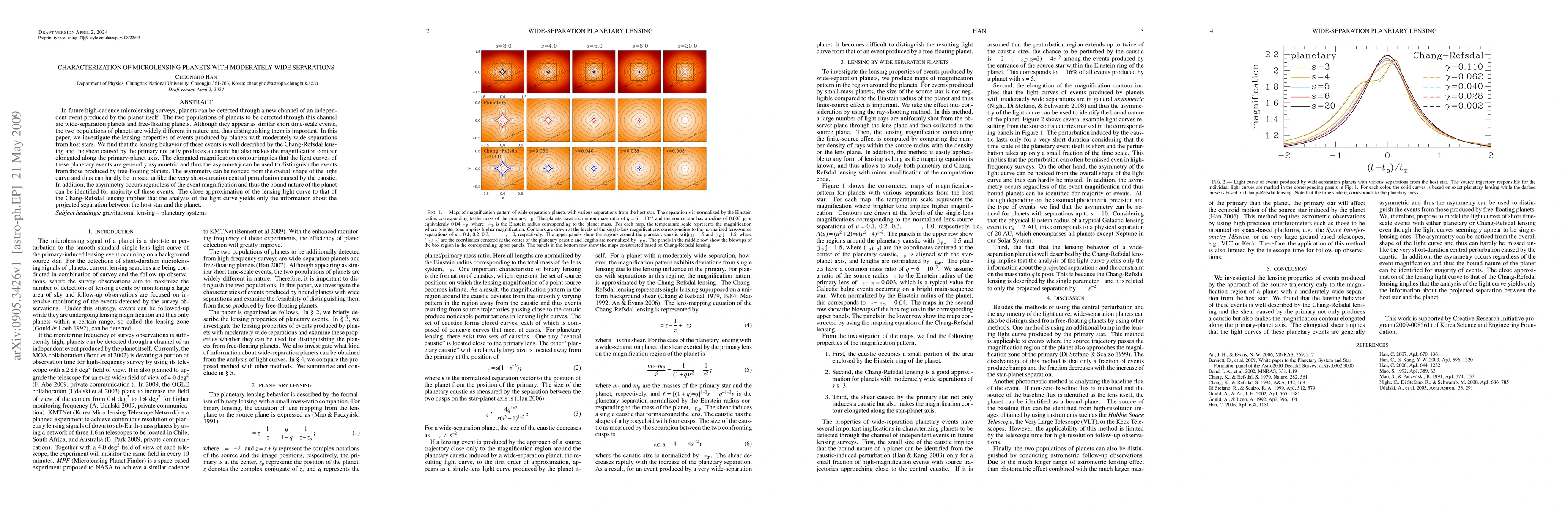 This paper investigates the microlensing properties of planets with moderately wide separations from their host stars, showing that their lensing behavior is well described by Chang-Refsdal lensing. The study finds that the asymmetry in the light curve due to the elongation of the magnification contour can be used to distinguish these events from those produced by free-floating planets, providing a reliable method to identify the bound nature of the planets.