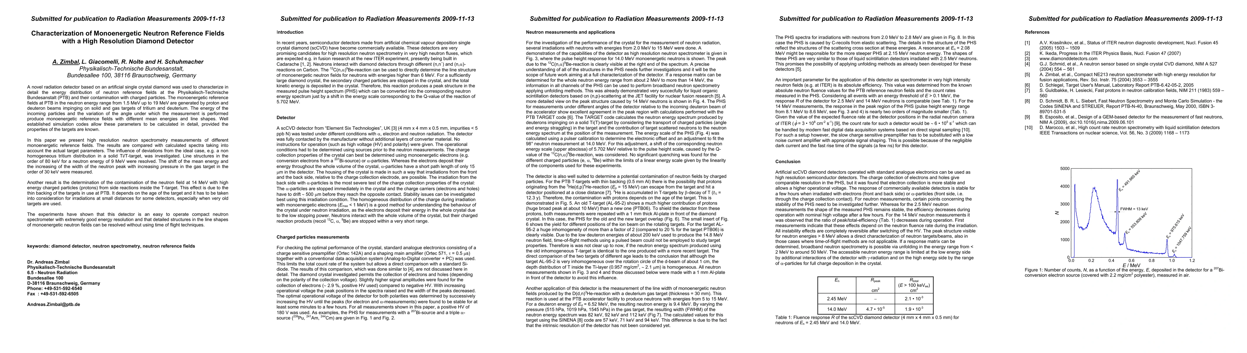 Researchers developed a high-resolution diamond detector to characterize monoenergetic neutron reference fields with energies up to 19 MeV, revealing detailed line shapes and contamination from charged particles.