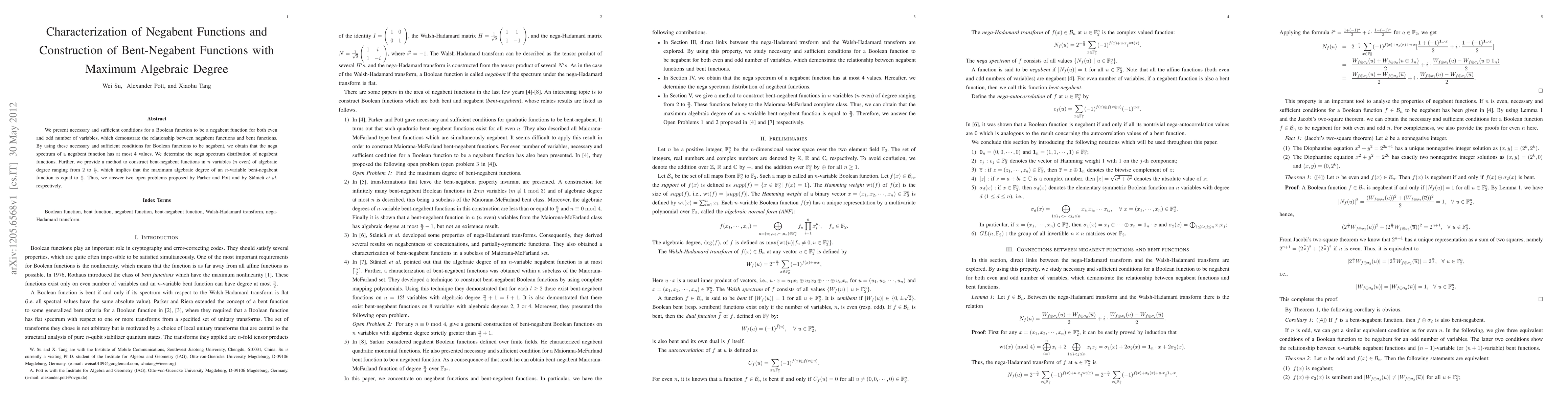 This paper characterizes negabent functions and establishes necessary and sufficient conditions for their existence, showing they relate to bent functions. It also constructs bent-negabent functions with maximum algebraic degree of $\frac{n}{2}$ for even $n$, solving two open problems regarding the nega spectrum and algebraic degree.