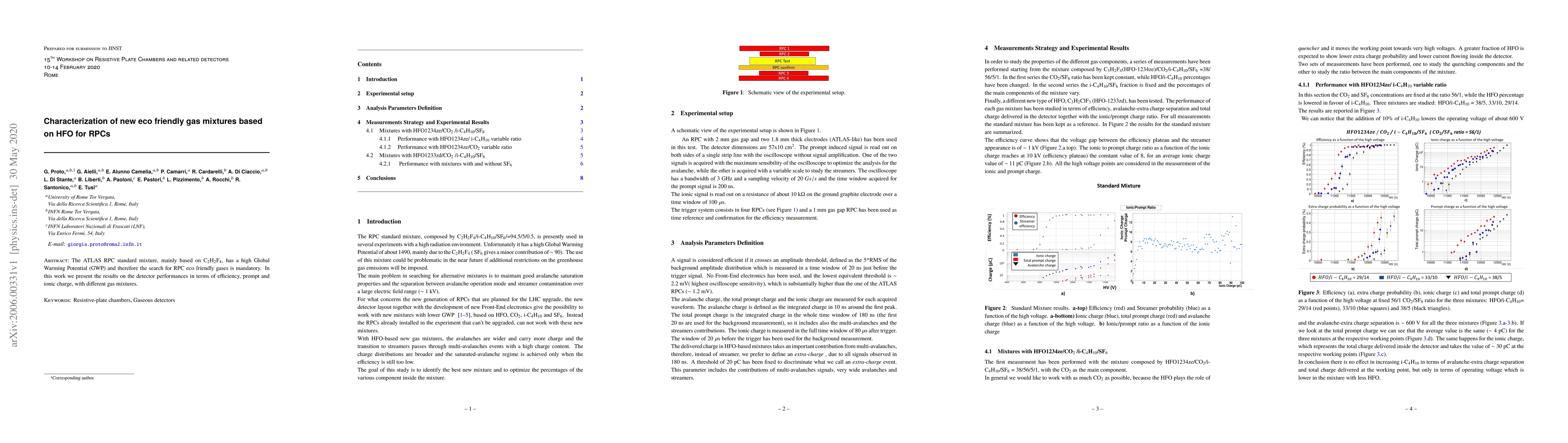 The ATLAS RPC standard mixture, mainly based on C$_{2}$H$_{2}$F$_{4}$, has a high Global Warming Potential (GWP) and therefore the search for RPC eco friendly gases is mandatory. In this work we present the results on the detector performances in terms of efficiency, prompt and ionic charge, with different gas mixtures.