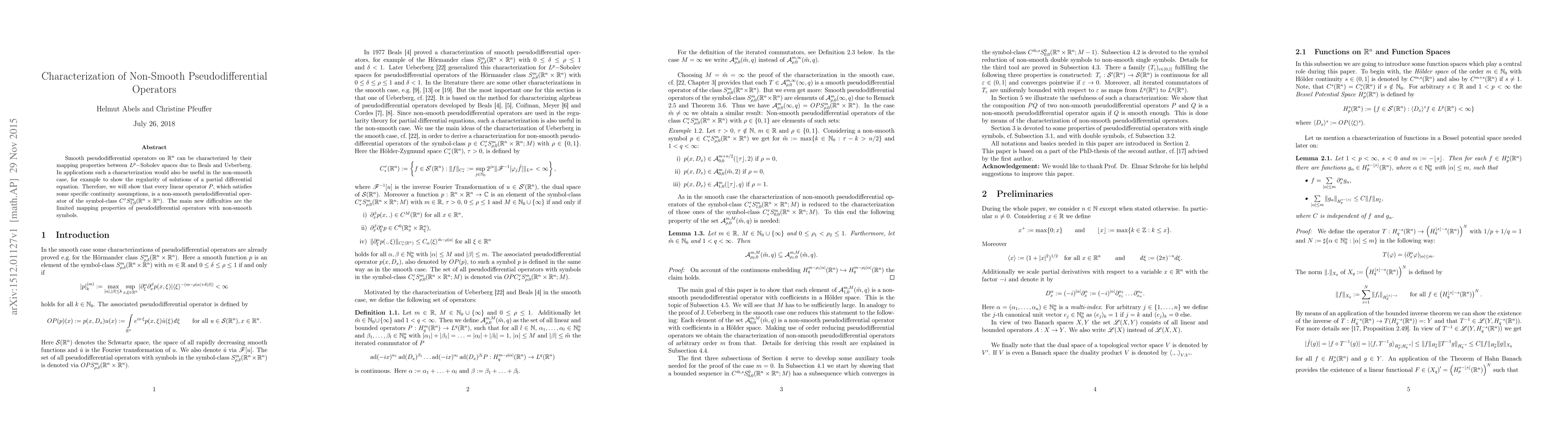 Summary: This paper characterizes non-smooth pseudodifferential operators by demonstrating that any linear operator satisfying specific continuity conditions is a non-smooth pseudodifferential operator of the symbol-class $C^{\tau}S^m_{1,0}(\mathbb{R}^n \times \mathbb{R}^n)$, addressing the challenges of limited mapping properties for non-smooth symbols.