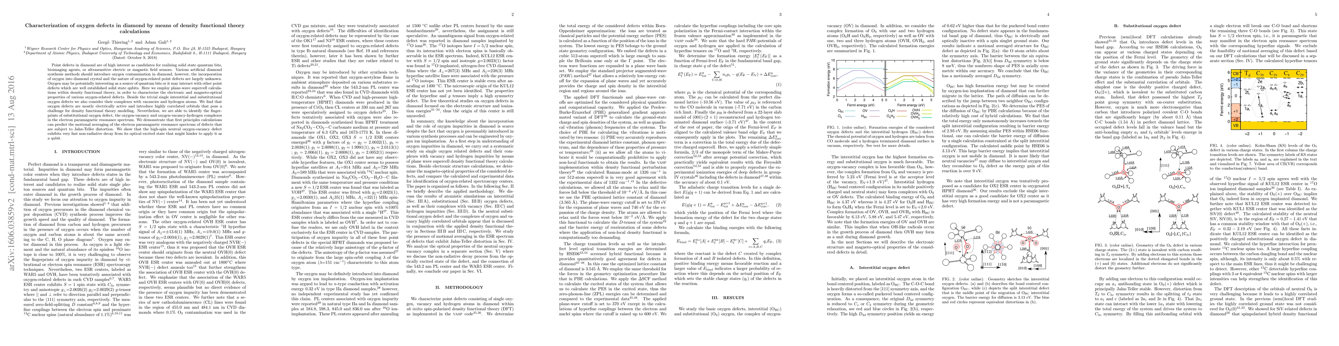 This paper uses density functional theory to characterize oxygen defects in diamond, identifying their electronic and magneto-optical properties. The study reveals that oxygen defects are mostly electrically active and introduces challenges for modeling, but it identifies specific signatures of these defects in electron paramagnetic resonance spectra.