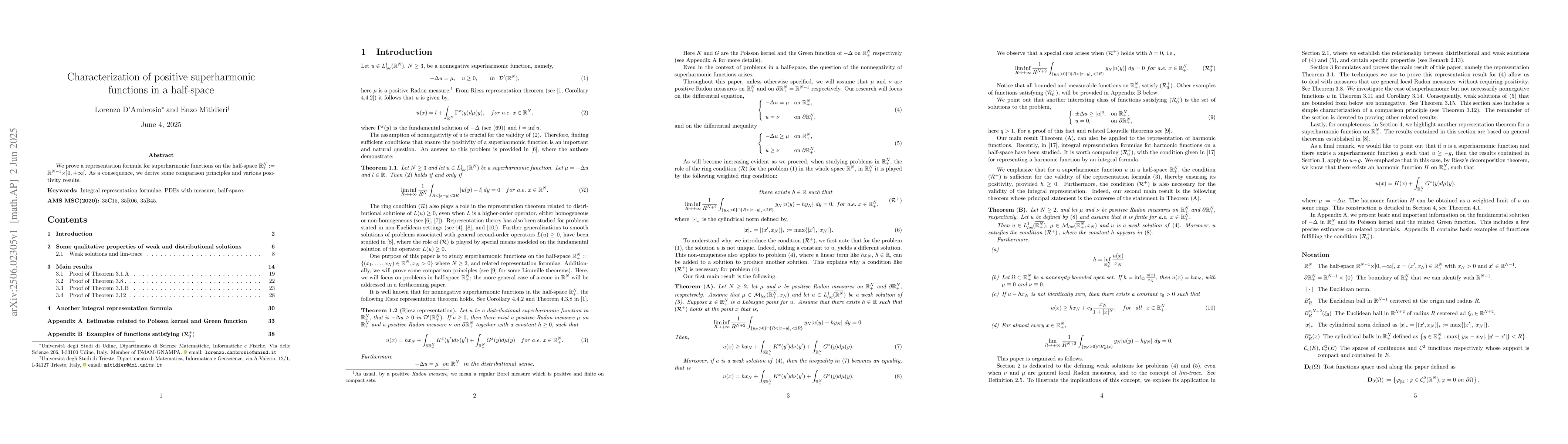 The paper presents a novel representation formula for positive superharmonic functions in a half-space, leading to comparison principles and positivity results.