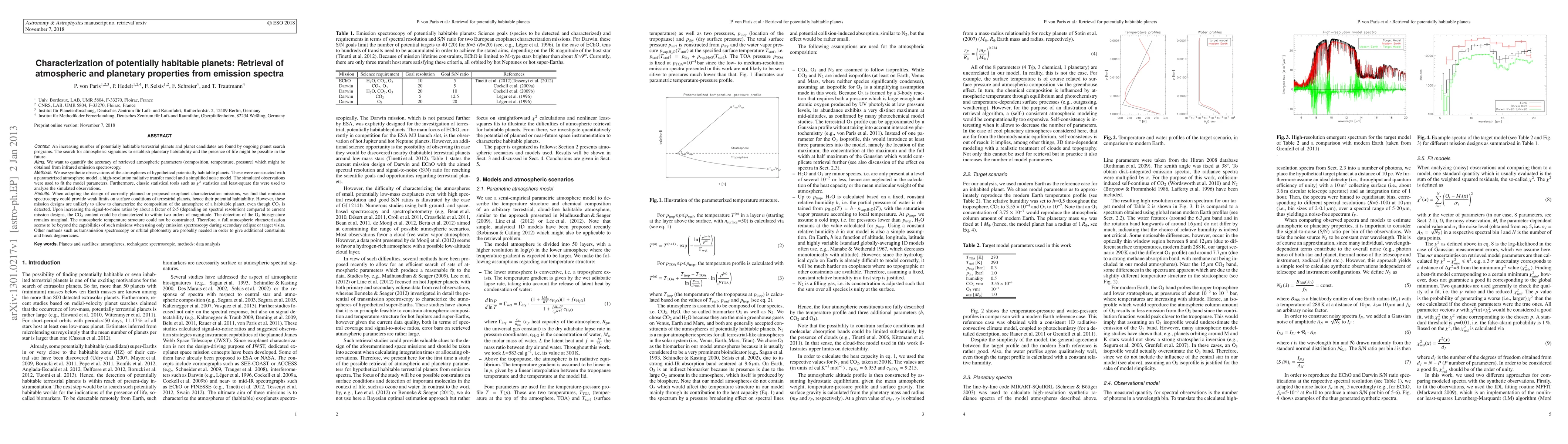 This paper investigates the potential of emission spectroscopy for characterizing the atmospheres of potentially habitable terrestrial planets. It finds that current mission designs provide weak limits on surface conditions and atmospheric composition, though CO2 could be detected with improved signal-to-noise ratios. Additional methods like transmission spectroscopy or orbital photometry are likely needed to fully characterize atmospheric properties and break degeneracies.