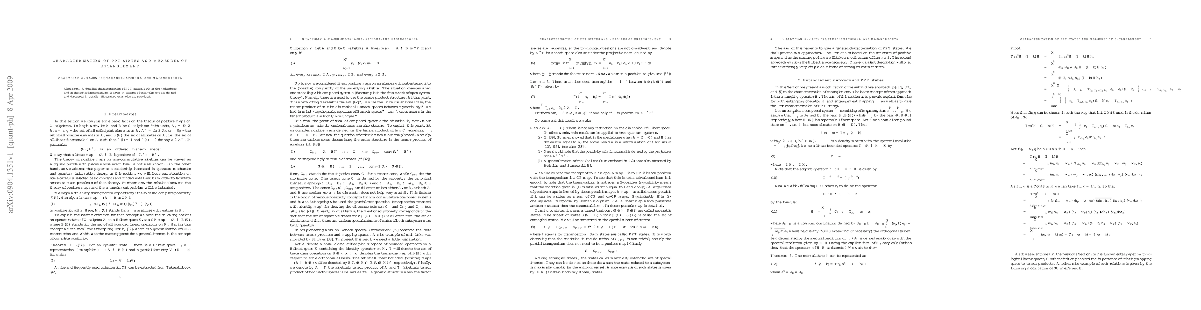 A detailed characterization of PPT states, both in the Heisenberg and in the Schr\"odinger picture, is given. Measures of entanglement are defined and discussed in details. Illustrative examples are provided.