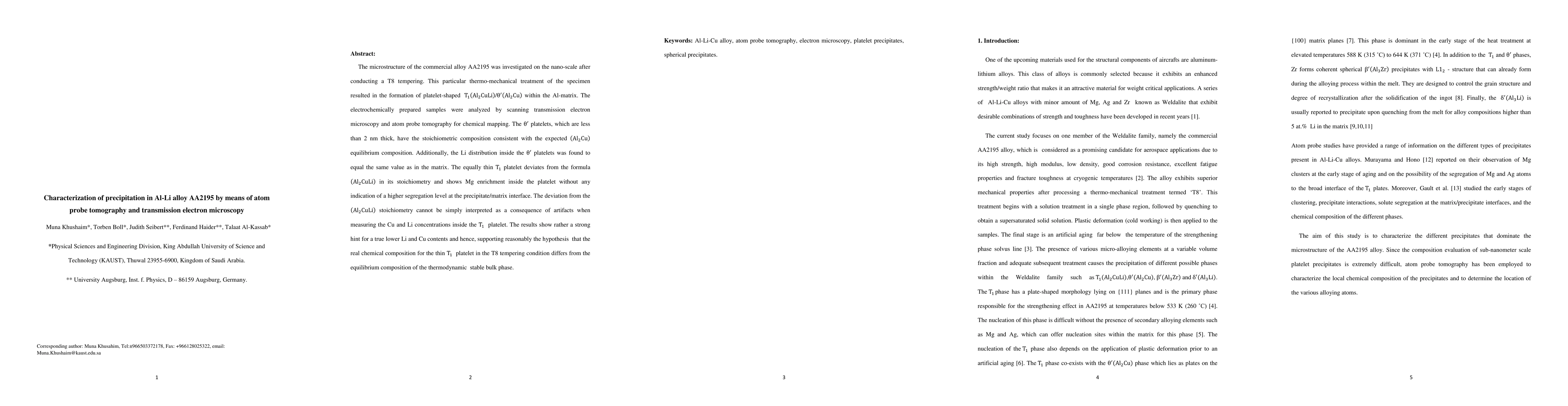 Researchers used atom probe tomography and transmission electron microscopy to study the Al-Li alloy AA2195 after a T8 tempering treatment. The analysis revealed deviations from expected chemical compositions in platelet-shaped precipitates, suggesting true non-equilibrium phases.