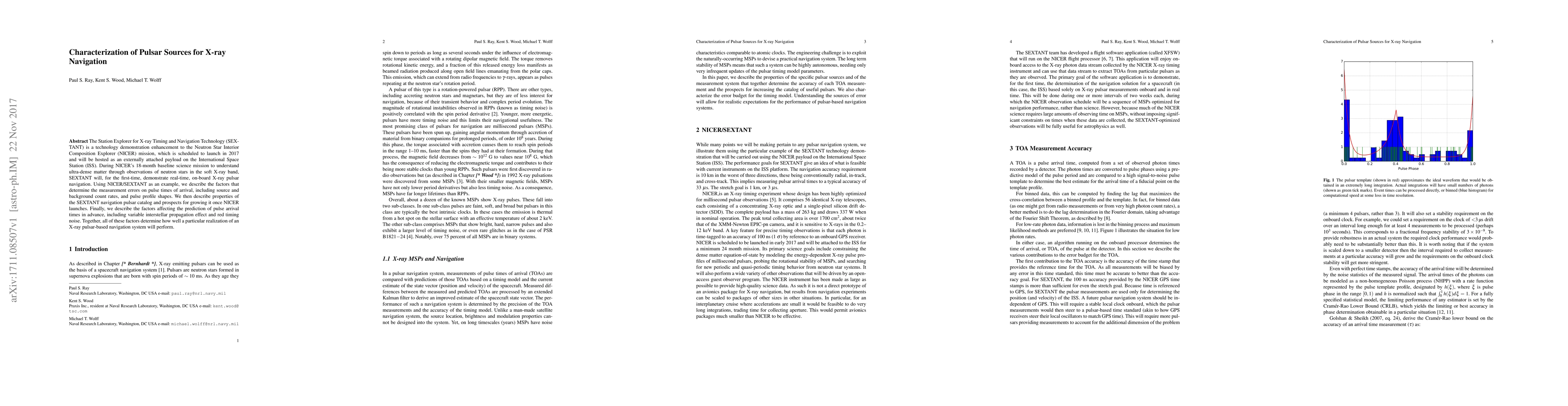 This paper discusses the SEXTANT technology demonstration for real-time X-ray pulsar navigation, part of the NICER mission, and analyzes factors affecting pulse arrival time measurements, including count rates and pulse profiles. The study also explores the potential for expanding the SEXTANT navigation pulsar catalog and the challenges in predicting pulse arrival times due to interstellar effects and red timing noise.