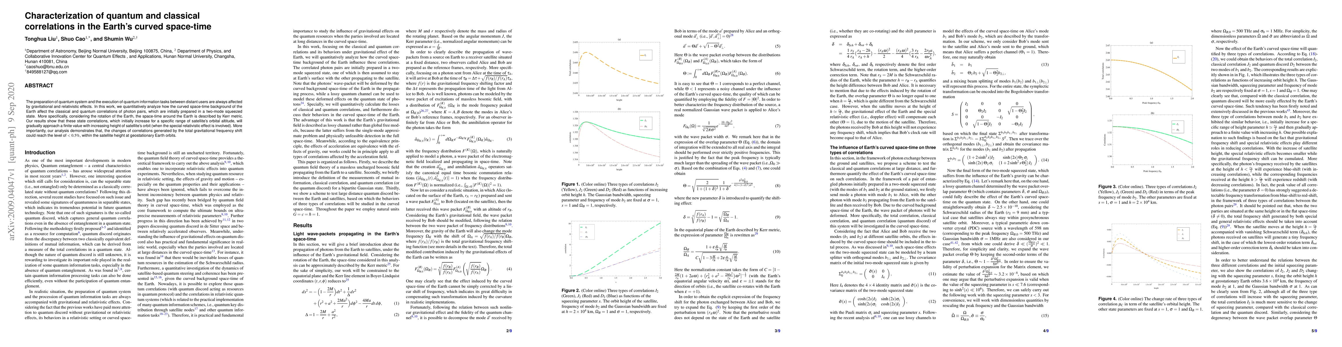 This paper quantitatively analyzes how Earth's curved space-time, described by the Kerr metric, affects classical and quantum correlations in photon pairs in a two-mode squeezed state. The study finds that correlations initially increase with satellite altitude but stabilize as relativistic effects become significant, with gravitational frequency shifts altering correlations by less than 0.5% at geostationary orbits.