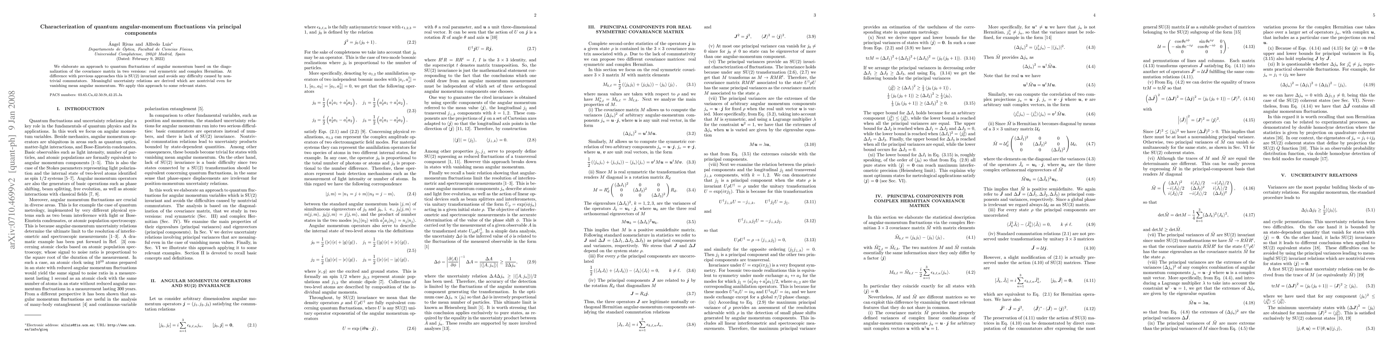 We elaborate an approach to quantum fluctuations of angular momentum based on the diagonalization of the covariance matrix in two versions: real symmetric and complex Hermitian. At difference with previous approaches this is SU(2) invariant and avoids any difficulty caused by nontrivial commutators. Meaningful uncertainty relations are derived which are nontrivial even for vanishing mean angular momentum. We apply this approach to some relevant states.