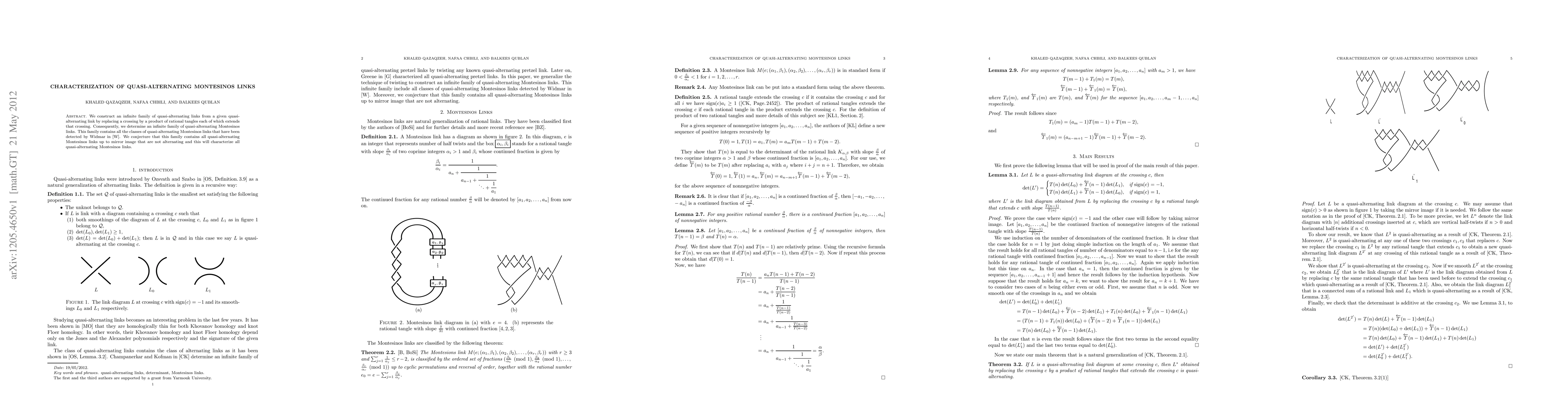 The paper constructs an infinite family of quasi-alternating Montesinos links by modifying a given quasi-alternating link with rational tangles, encompassing all known classes detected by Widmar and conjecturing that it characterizes all such links up to mirror image.