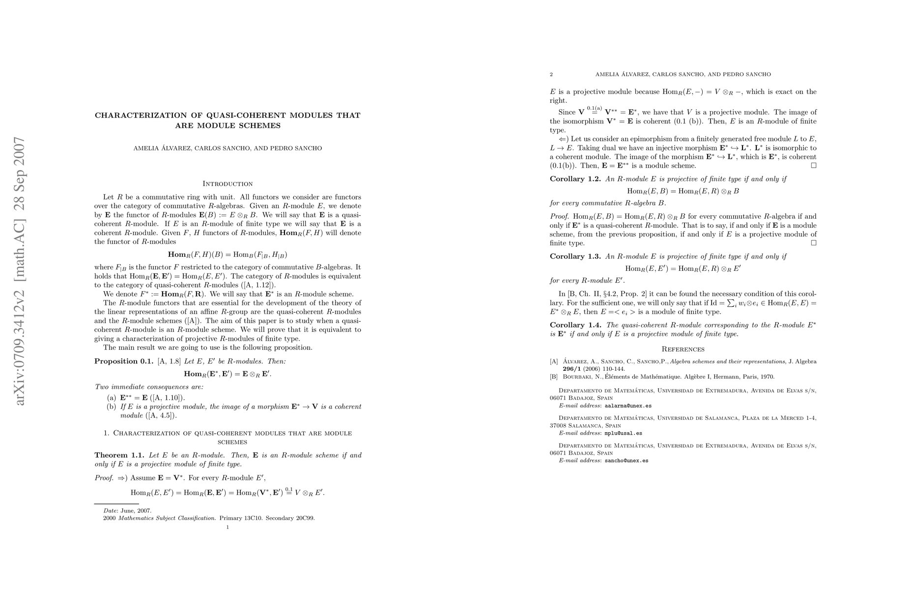 The R-module functors that are essential for the development of the theory of the linear representations of an affine R-group are the quasi-coherent R-modules and the R-module schemes. The aim of this paper is to study when a quasi-coherent R-module is an R-module scheme. We will prove that it is equivalent to giving a characterization of projective R-modules of finite type.
