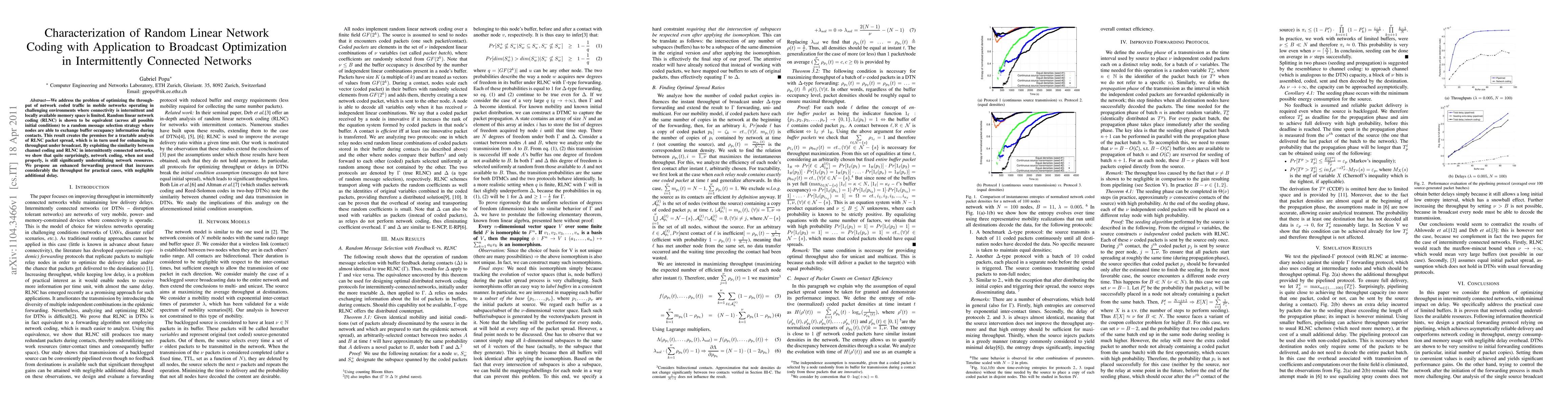 We address the problem of optimizing the throughput of network coded traffic in mobile networks operating in challenging environments where connectivity is intermittent and locally available memory space is limited. Random linear network coding (RLNC) is shown to be equivalent (across all possible initial conditions) to a random message selection strategy where nodes are able to exchange buffer occupancy information during contacts. This result creates the premises for a tractable analysis of RLNC packet spread, which is in turn used for enhancing its throughput under broadcast. By exploiting the similarity between channel coding and RLNC in intermittently connected networks, we show that quite surprisingly, network coding, when not used properly, is still significantly underutilizing network resources. We propose an enhanced forwarding protocol that increases considerably the throughput for practical cases, with negligible additional delay.