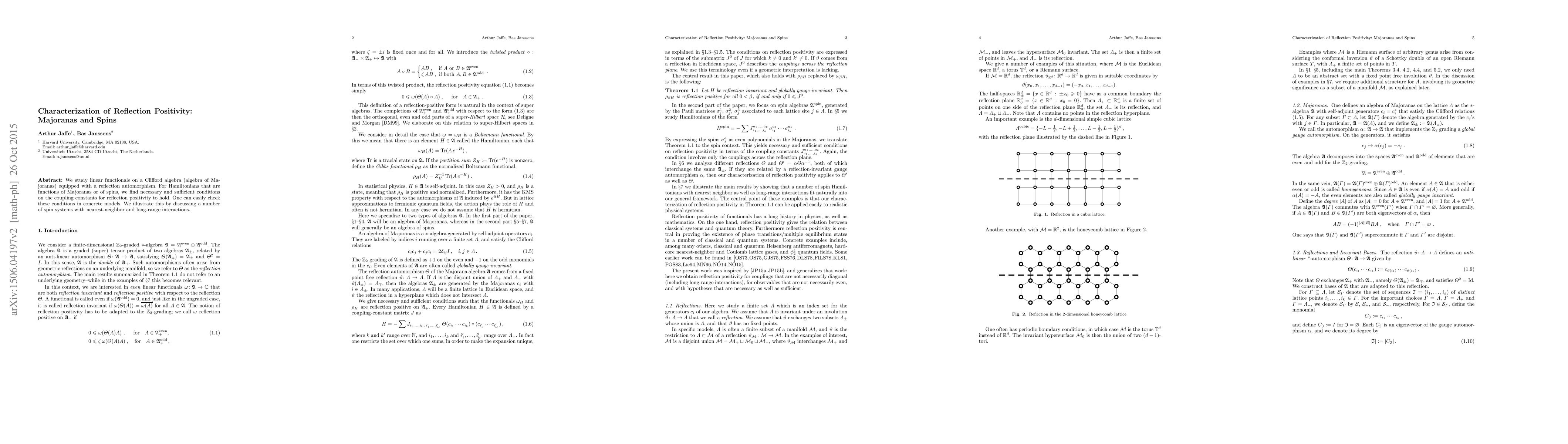 We study linear functionals on a Clifford algebra (algebra of Ma- joranas) equipped with a reflection automorphism. For Hamiltonians that are functions of Majoranas or of spins, we find necessary and sufficient conditions on the coupling constants for reflection positivity to hold. One can easily check these conditions in concrete models. We illustrate this by discussing a number of spin systems with nearest-neighbor and long-range interactions.
