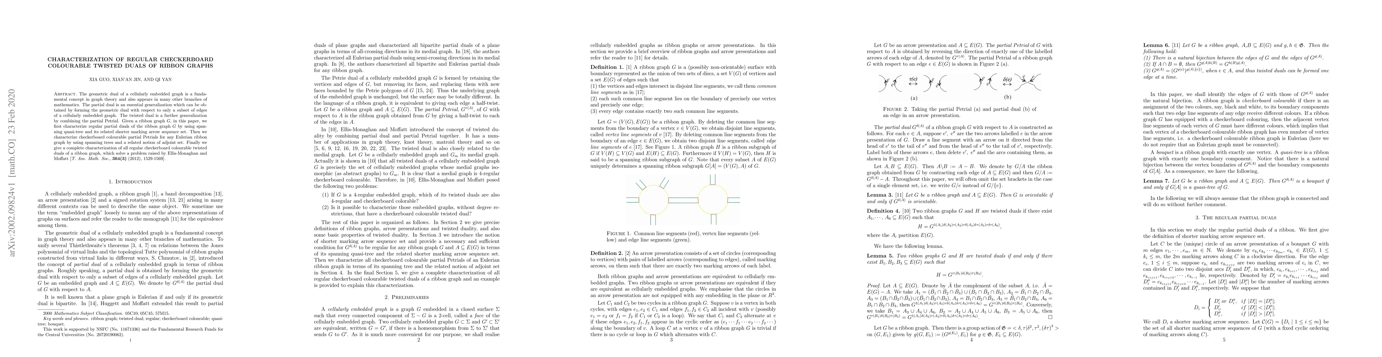 The geometric dual of a cellularly embedded graph is a fundamental concept in graph theory and also appears in many other branches of mathematics. The partial dual is an essential generalization which can be obtained by forming the geometric dual with respect to only a subset of edges of a cellularly embedded graph. The twisted dual is a further generalization by combining the partial Petrial. Given a ribbon graph $G$, in this paper, we first characterize regular partial duals of the ribbon graph $G$ by using spanning quasi-tree and its related shorter marking arrow sequence set. Then we characterize checkerboard colourable partial Petrials for any Eulerian ribbon graph by using spanning trees and a related notion of adjoint set. Finally we give a complete characterization of all regular checkerboard colourable twisted duals of a ribbon graph, which solve a problem raised by Ellis-Monaghan and Moffatt [T. Am. Math. Soc., 364(3) (2012), 1529-1569].