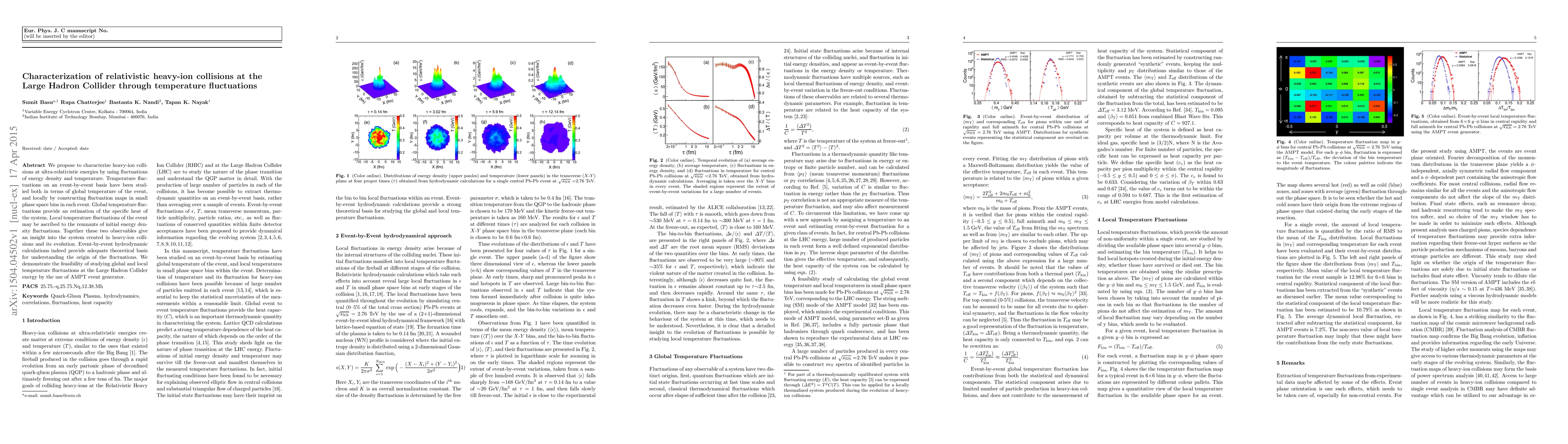 This paper investigates the characterization of ultra-relativistic heavy-ion collisions using energy density and temperature fluctuations, both globally and locally. It employs the AMPT event generator to demonstrate the feasibility of these analyses at the Large Hadron Collider energy, providing insights into the system's specific heat and initial energy density fluctuations.