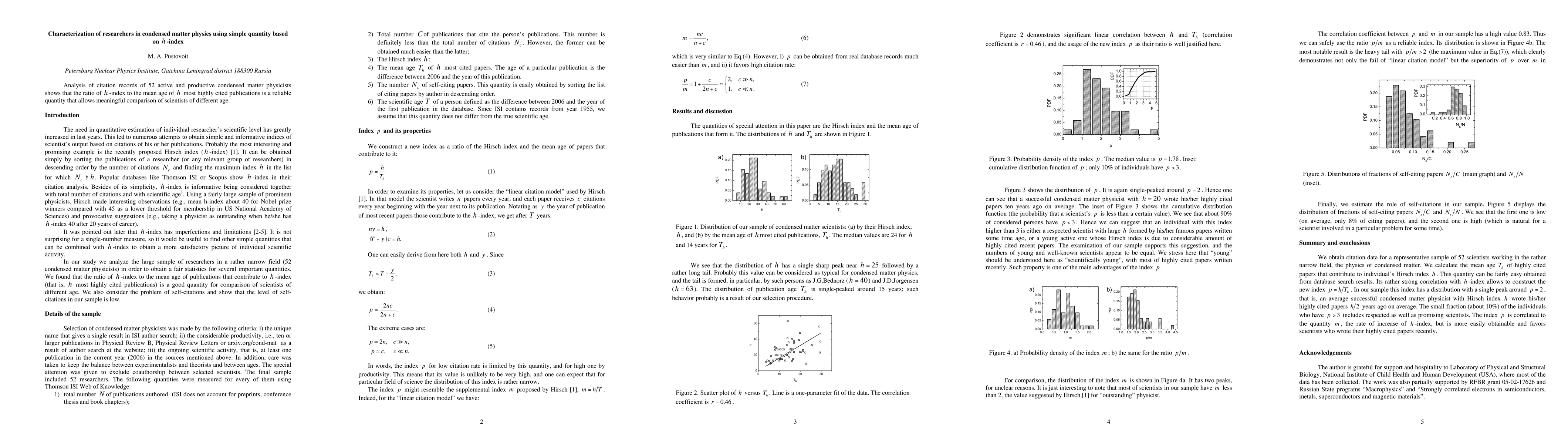 Summary: This study analyzes citation records of 52 condensed matter physicists, finding that the ratio of h-index to the mean age of their most cited publications serves as a reliable metric for comparing researchers of different ages. This simple quantity offers a meaningful way to evaluate productivity across different career stages.