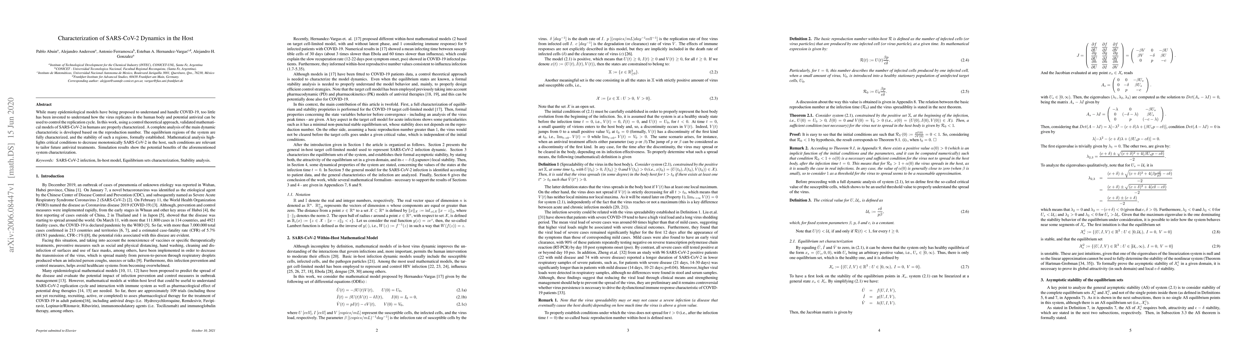 While many epidemiological models have being proposed to understand and handle COVID-19, too little has been invested to understand how the virus replicates in the human body and potential antiviral can be used to control the replication cycle. In this work, using a control theoretical approach, validated mathematical models of SARS-CoV-2 in humans are properly characterized. A complete analysis of the main dynamic characteristic is developed based on the reproduction number. The equilibrium regions of the system are fully characterized, and the stability of such a regions, formally established. Mathematical analysis highlights critical conditions to decrease monotonically SARS-CoV-2 in the host, such conditions are relevant to tailor future antiviral treatments. Simulation results show the potential benefits of the aforementioned system characterization.