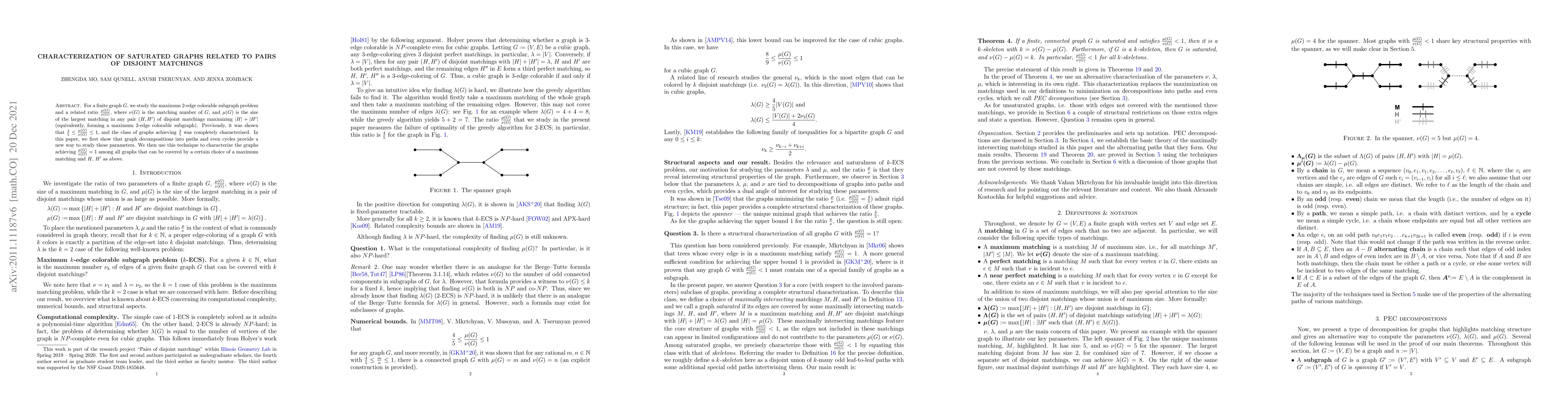 We study the ratio, in a finite graph, of the sizes of the largest matching in any pair of disjoint matchings with the maximum total number of edges and the largest possible matching. Previously, it was shown that this ratio is between 4/5 and 1, and the class of graphs achieving 4/5 was completely characterized. In this paper, we first show that graph decompositions into paths and even cycles provide a new way to study this ratio. We then use this technique to characterize the graphs achieving ratio 1 among all graphs that can be covered by a certain choice of a maximum matching and maximum disjoint matchings.