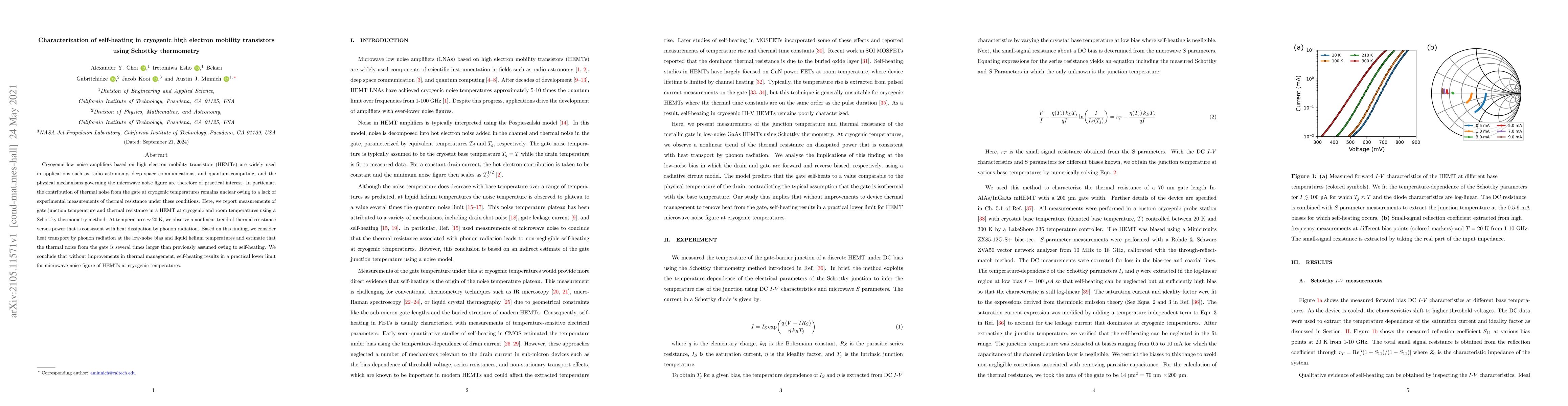 This paper investigates the self-heating effects in cryogenic high electron mobility transistors (HEMTs) using Schottky thermometry, revealing that thermal noise from the gate at low temperatures is significantly higher than previously assumed due to phonon radiation. The findings suggest that self-heating imposes a practical lower limit on the microwave noise figure of HEMTs at cryogenic temperatures.