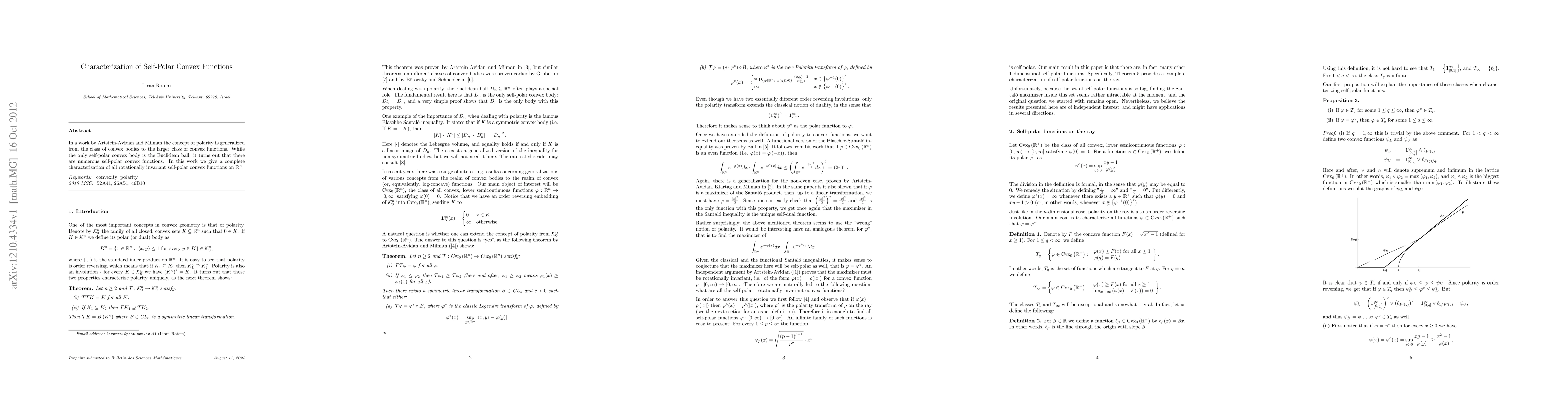 This paper characterizes all rotationally invariant self-polar convex functions in \( \mathbb{R}^n \), extending the concept of polarity from convex bodies to convex functions, and identifies the numerous such functions beyond the Euclidean ball.